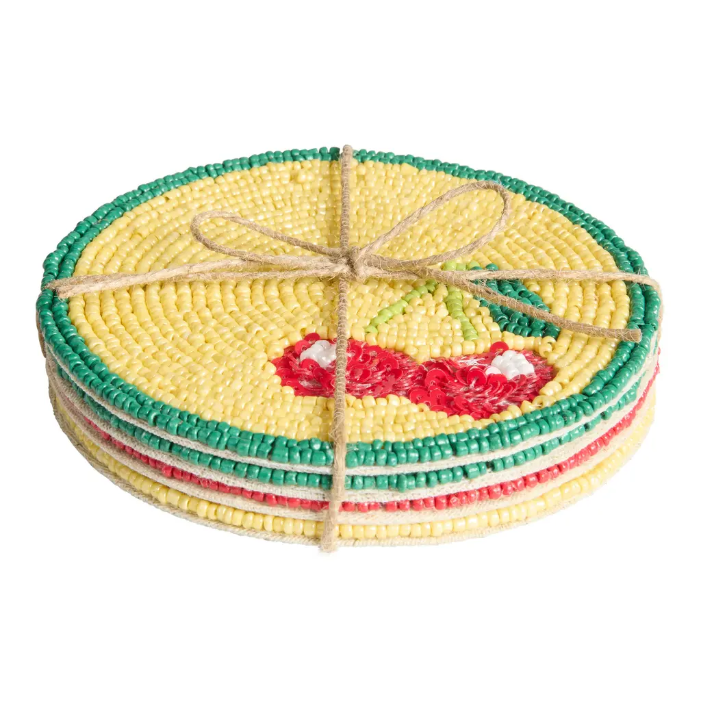 Round Multicolor Fruit Beaded Coasters 4 Pack