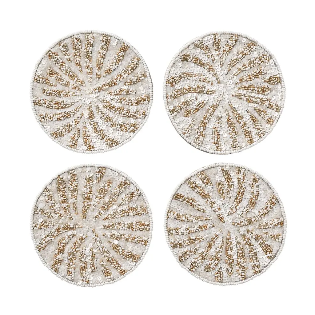 Revamp your coffee table into a parade of produce with our exclusive round coasters. They're handmade in India with a mix of beads and sequins forming colorful backgrounds with tiny lemon, cherry, watermelon and strawberry icons and coordinating borders. A farm-fresh take on our fan-favorite beaded accessories, this decor is a whimsical accent for your space or a sweet gift for any hostess.
