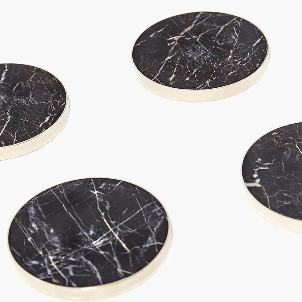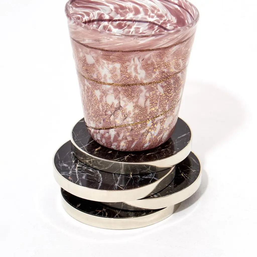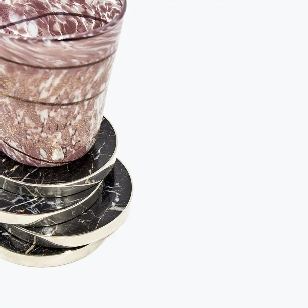 Salta Round Coaster, Alpaca Silver & Black Onyx Natural Stone