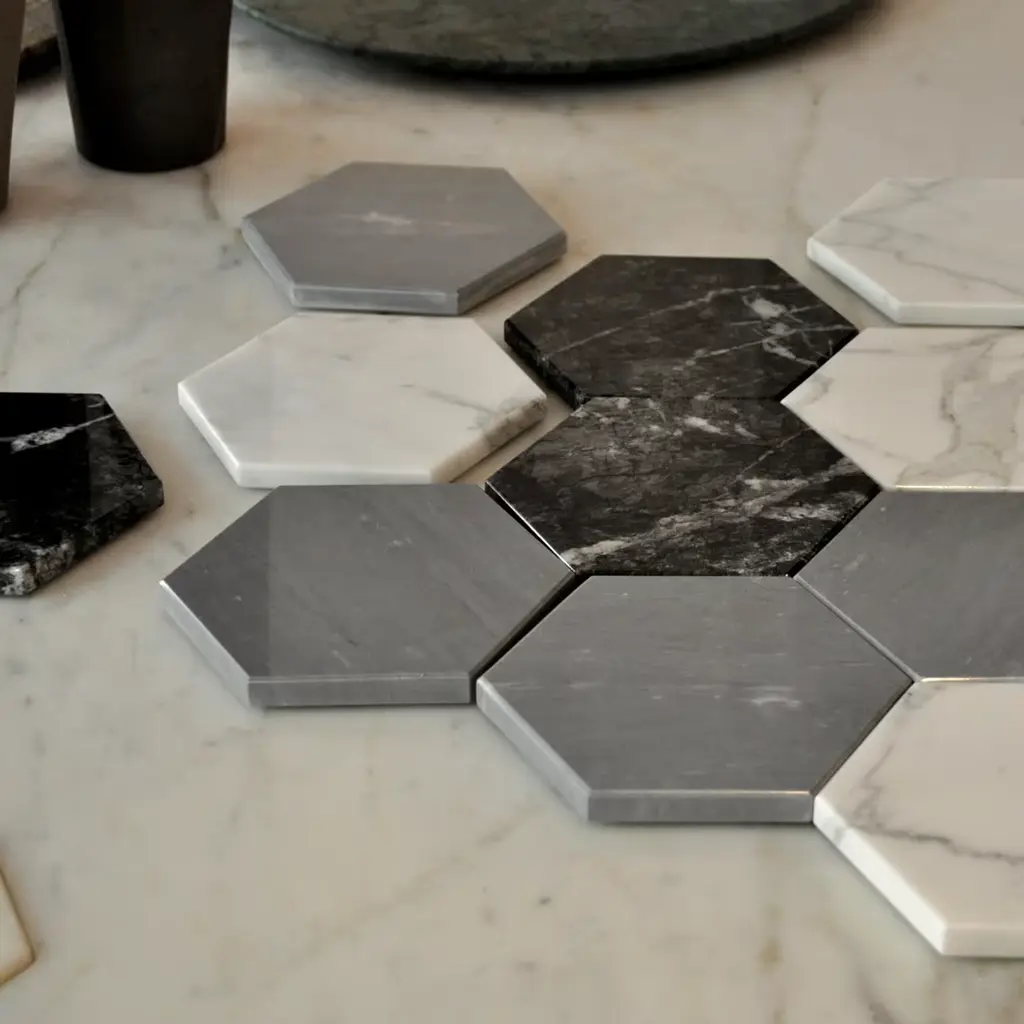 Set Of 2 Convivio Coasters In Grey Bardiglio Marble