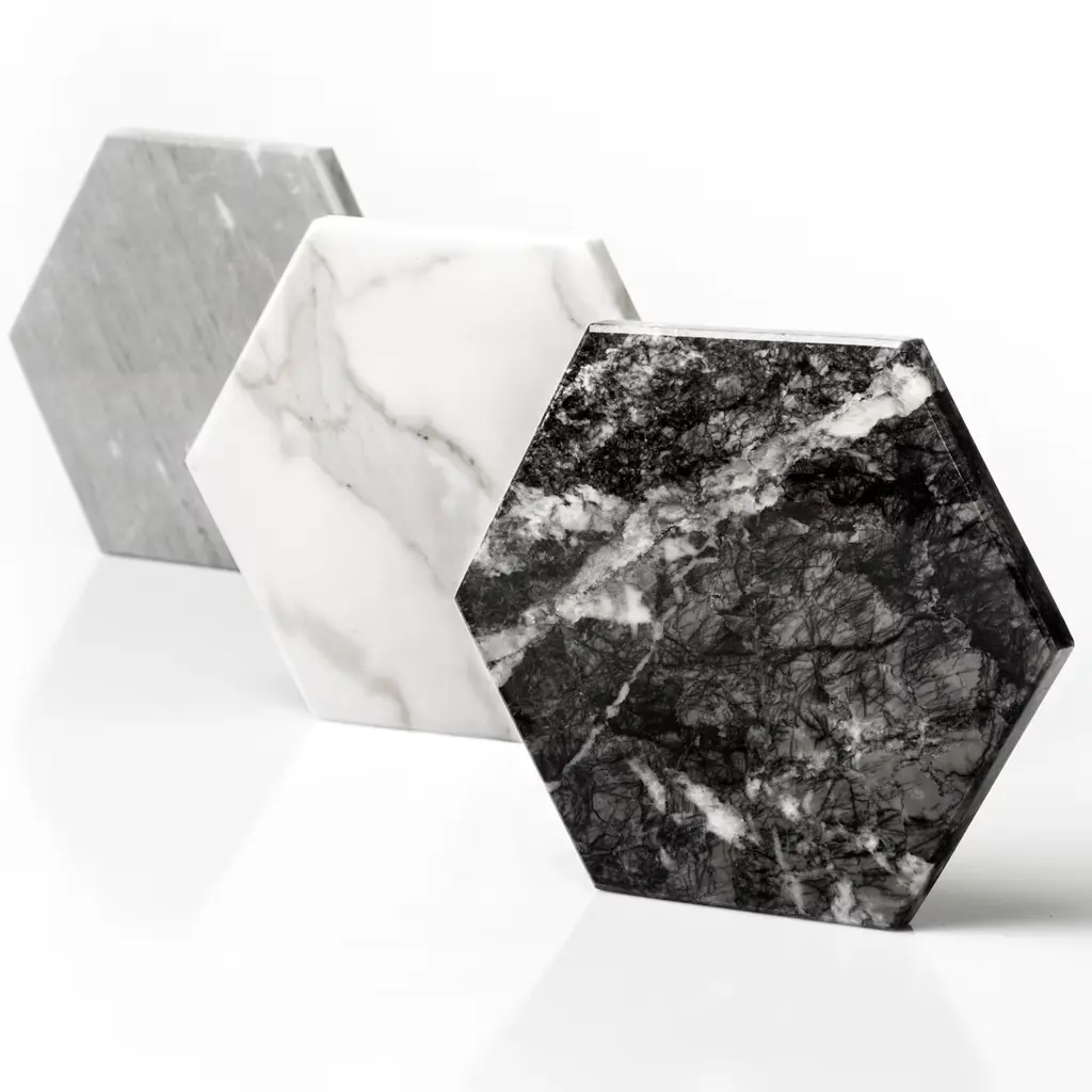 This elegant coaster is a handmade object of functional decor that can be used to serve cold drinks or hot drinks without the use of a saucer. It can be used with other identical ones or combined with different marbles to create a dynamic table for a colorful dinner. The finish is polished, but its can also be matte, which is easy to clean. Other available marbles are White Carrara, Green Guatemala, Grey Carnico, Calacatta Carrara, Calacatta Oro, Pink Portugal, and Black Marquina. Please, ask the concierge about possible changes in price with different materials and about customized engravings for this piece.