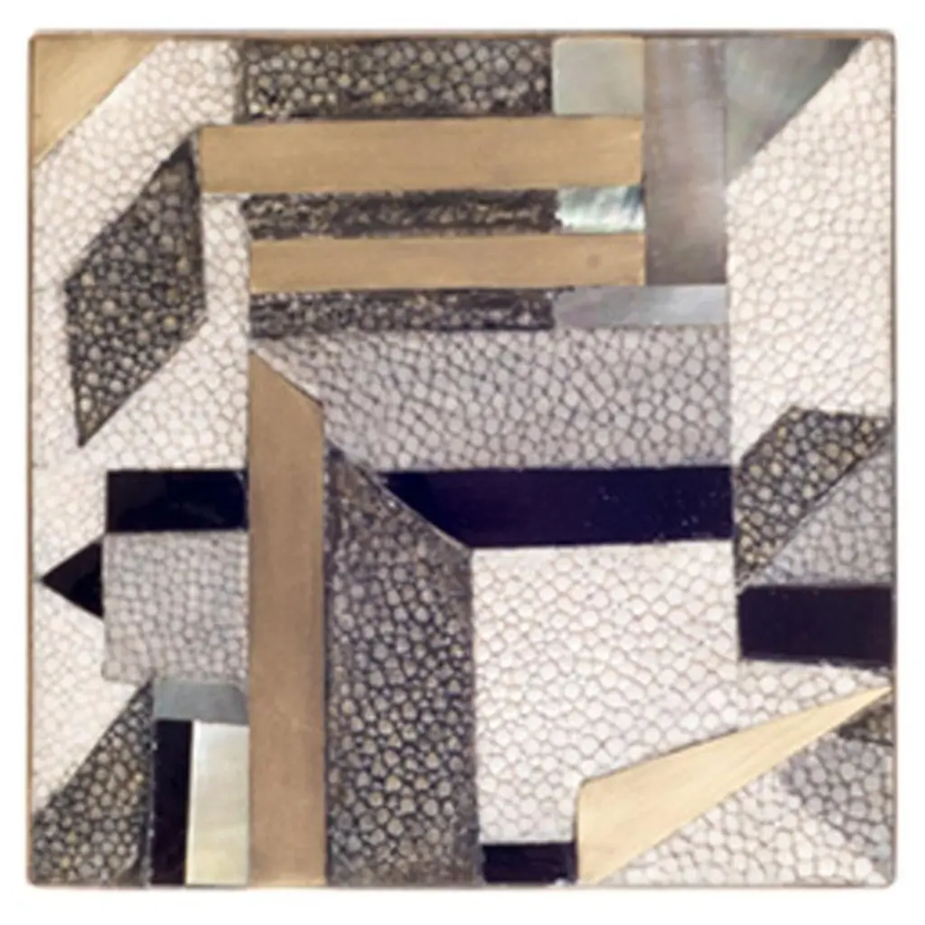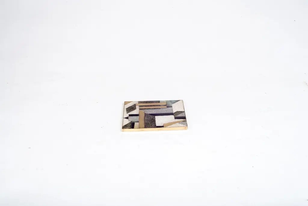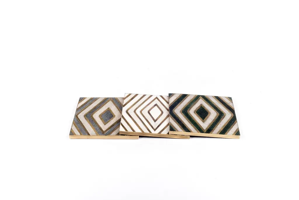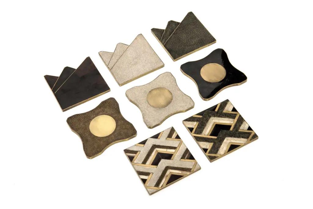 Set Of 4 Geometric Coasters Inlaid In Shagreen, Shell And Brass By Kifu Paris