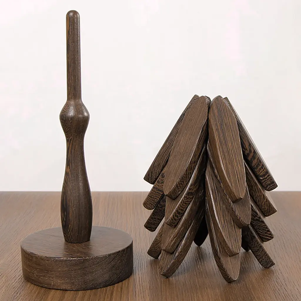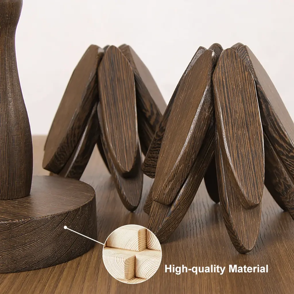 Set Of 4 Wooden Tree Coasters Heat Insulation Mats In Walnut With Stand