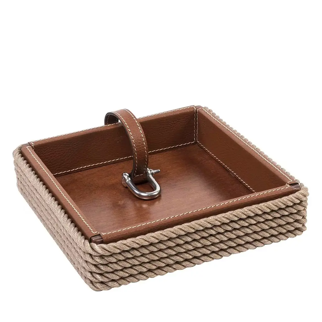 A nautical take-on traditional coasters, this elegant design in top-rate brown leatherette will be an optimum background for glasses of prized wines and delightful cocktails. The beige rope outlining its circular profile gives that one-of-a-kind accent marking the style of Marricreo's brand.