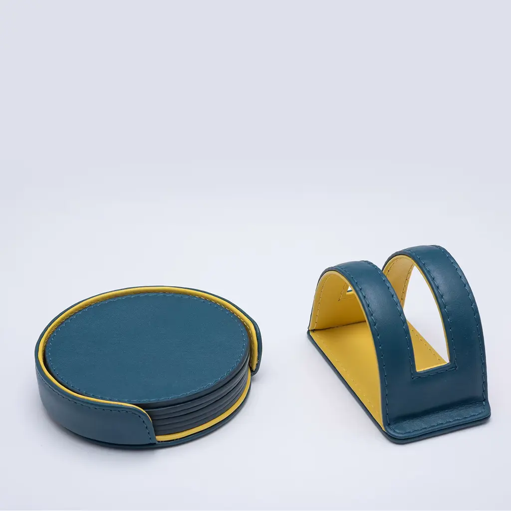 Set Of 6 Dalì Soft Round Amalfi Blue And Cedro Yellow Coasters