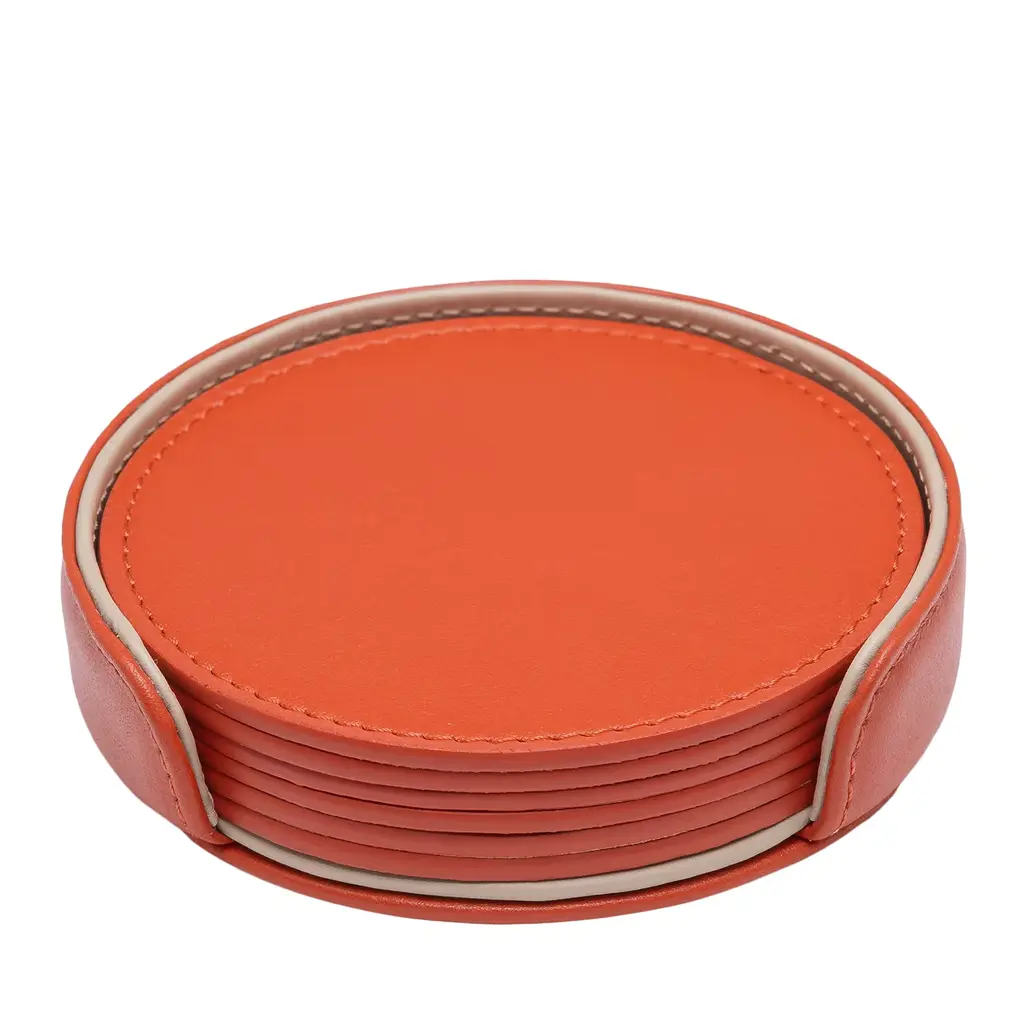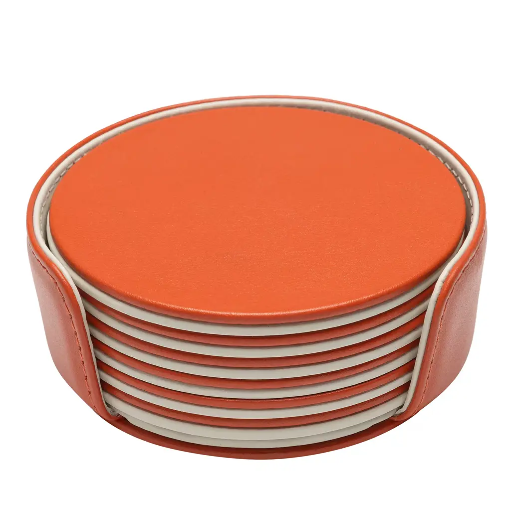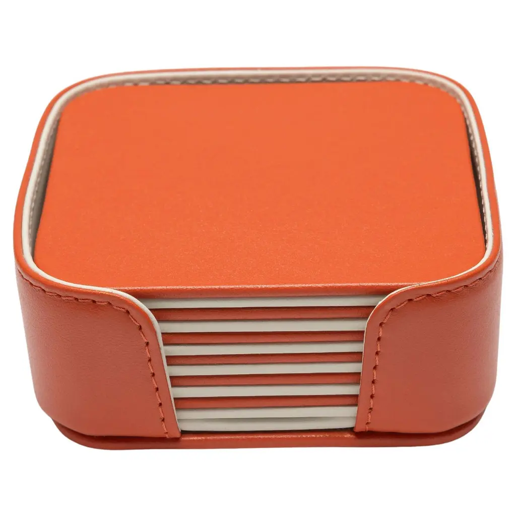 Set Of 6 Mondrian Spritz Orange And Luna White Square Coasters