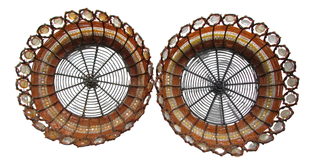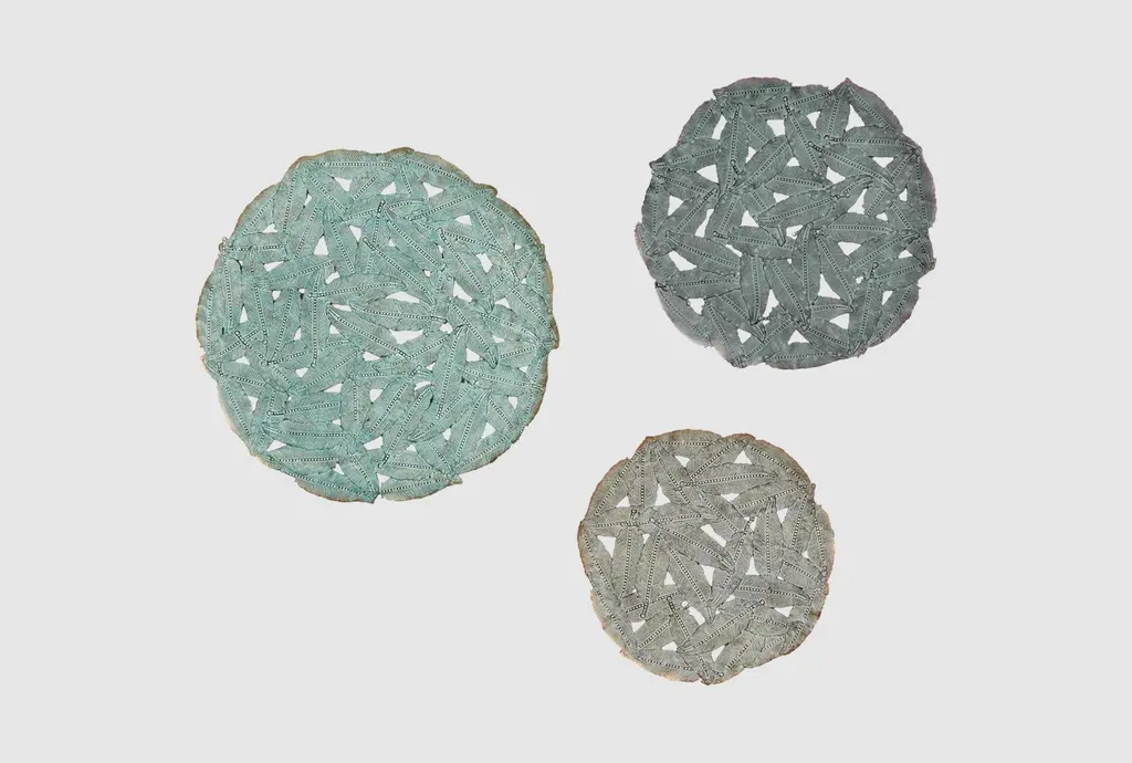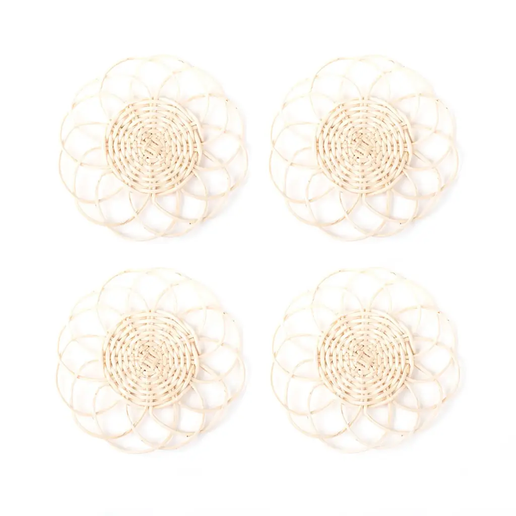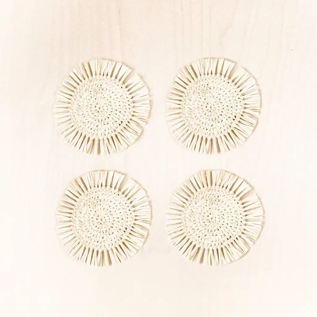 Set Of Four, Natural Raffia Round Crochet Coasters With Fringe