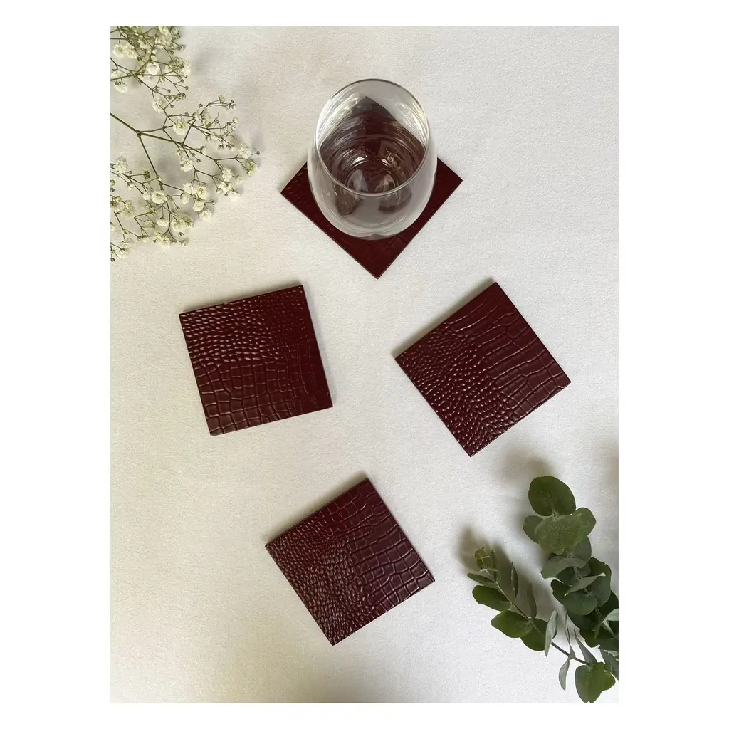 Handcrafted by skilled artisans our square coasters in faux python burgundy are finished in a deep sophisticated reddish-brown, inspired by the colour of wine. Printed from natural python skins our casts emulate the intricate scales of these iconic reptiles. Through meticulous burnishing and polishing, the natural patina of the material is brought to life making each mat truly unique.