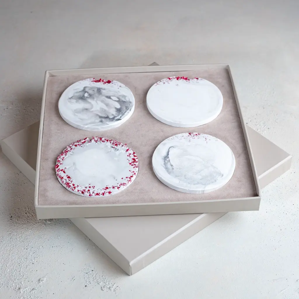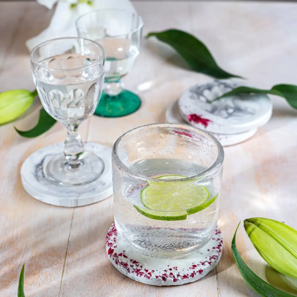 Inspired by the stylish designs in our collection, each of our handcrafted coasters has a functional and decorative design. Embellished with colorful crystals and aesthetic lines, these coasters are packaged in sets of four and will add an elegant touch to your environment.