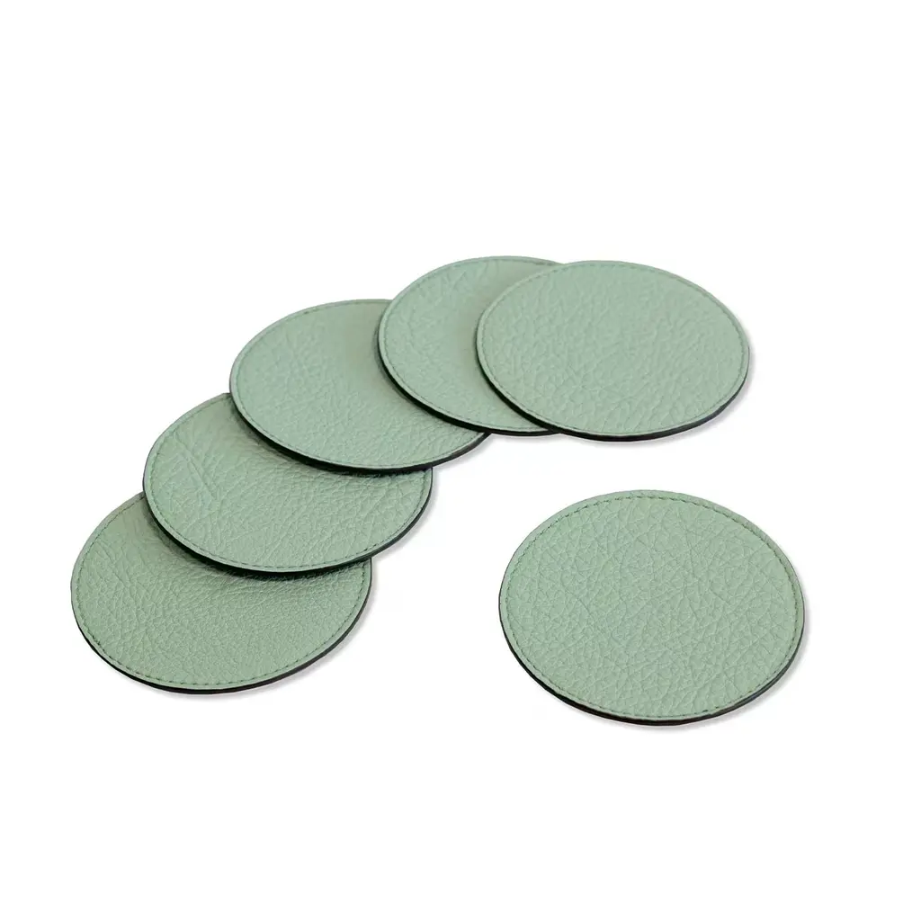 This smeralda green set of six coasters is made from genuine soft leather. It offers both style and functionality. Available also in other fourteen available colors to suit many preferences, please contact the Concierge for more information.