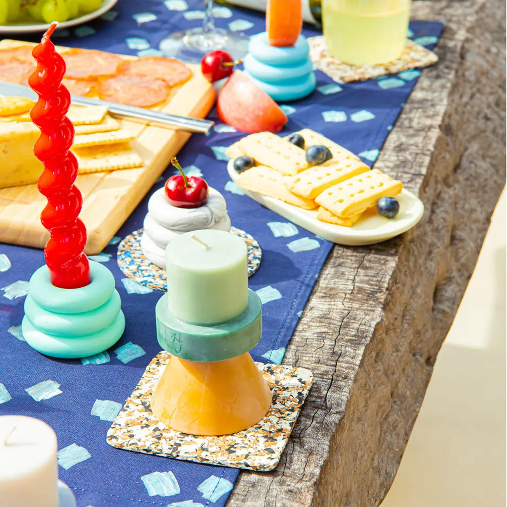 Made from a unique blend of cork and vibrant waste materials sourced from sandal production, these innovative Speckled Coasters by Yod & Co. are a testament to sustainable design and resourcefulness. Available in two captivating colorways, they offer both style and environmental consciousness in a single package. Crafted with a focus on sustainability, these items represent a fusion of materials that not only serve a functional purpose but also make a statement about responsible consumption. By up cycling waste materials, they contribute to a reduction in environmental impact while adding a touch of creativity to your space. The available colorways provide options to suit various aesthetics and preferences, allowing you to choose the one that best complements your surroundings. Whether you opt for the earthy, natural tones of cork, or prefer a pop of color, these sets of four offer versatility and style for any setting.