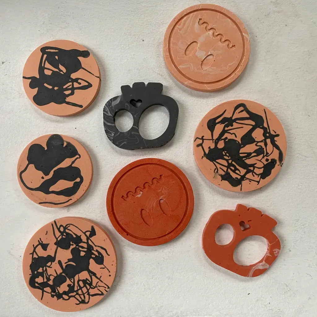 The perfect set for the Halloween lover! Ideal to serve as coasters during autumn brunch but also excellent for holding candles or just as a cute display piece. Made with a smooth finish, the coasters can hold glasses of most sizes.By Shax products are handmade per order and will look slightly different to the product images. Pieces may also have small air bubbles, which is a result of the hand poured working process of jesmonite and is a natural, authentic finish.