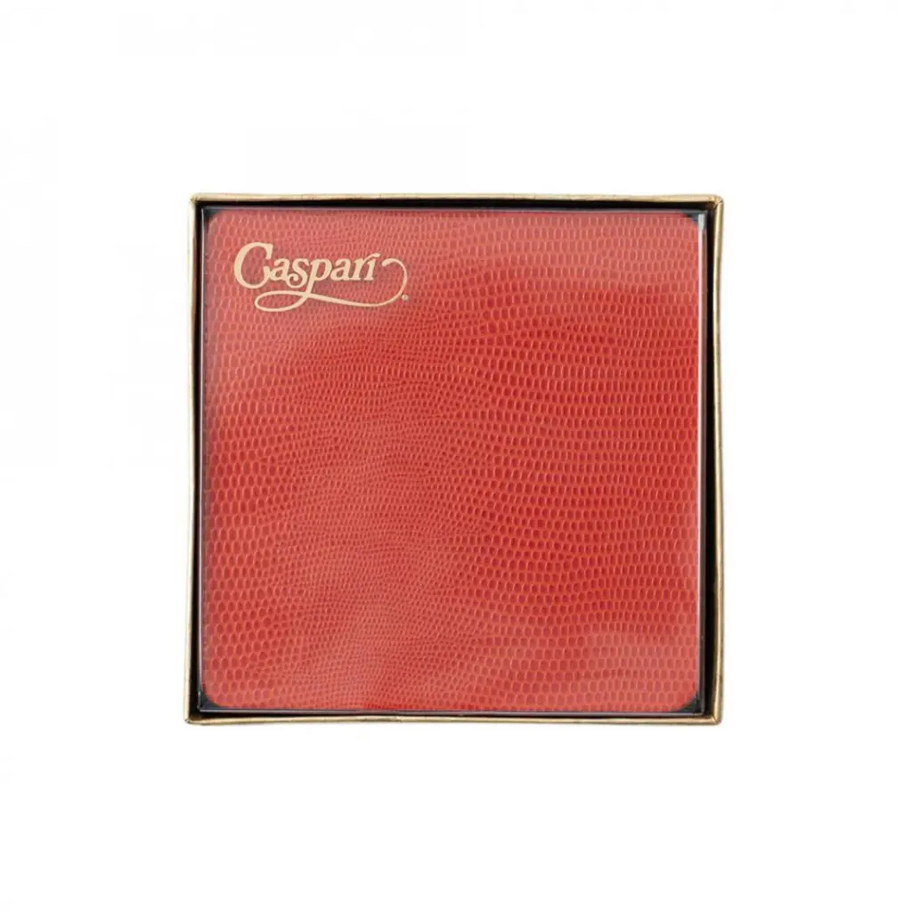 Caspari’s felt-backed Lizard Coasters are handcrafted in our own bindery in the United States and are a part of the Gallery Collection, which incorporates the same artisan skills used in centuries past to create beautiful and high-quality handmade goods. The top surfaces of our coasters are made from a durable, embossed faux leather with a felt backing. The sets are a lovely addition to any tabletop and keep your surfaces well protected. Eight coasters arrive in a gold box, which is perfect for gifting.