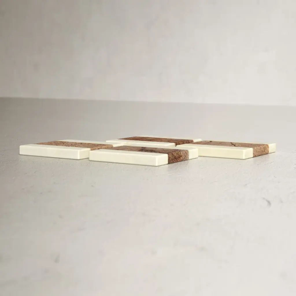 Coasters are one of those things many people do not think about today but they should. They protect the surface of tables from scratches and ugly stains. When wood tables come into the picture, there is no question that coasters are a must. The condensation from glasses or mugs can do permanent damage on wood surfaces. These brown and white marble coasters are beautiful and will add to the room decor.