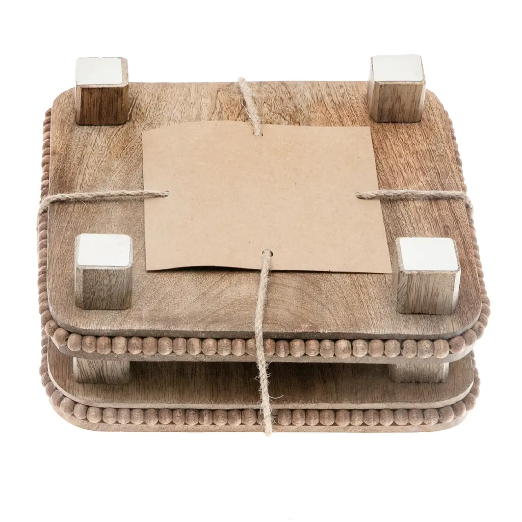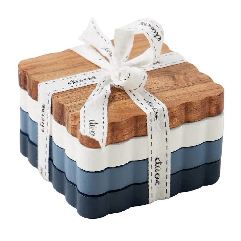 Adorn your coffee table with a charming set of Scalloped Coasters. Featuring a classic finish that showcases the natural wood grain, this set is sure to elevate interiors. The trending yet timeless scalloped edge adds a touch of sophistication to any table. Perfect for gifting to the hostess who appreciates both style and functionality.