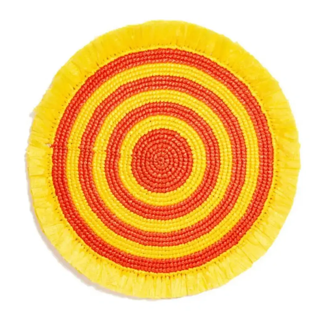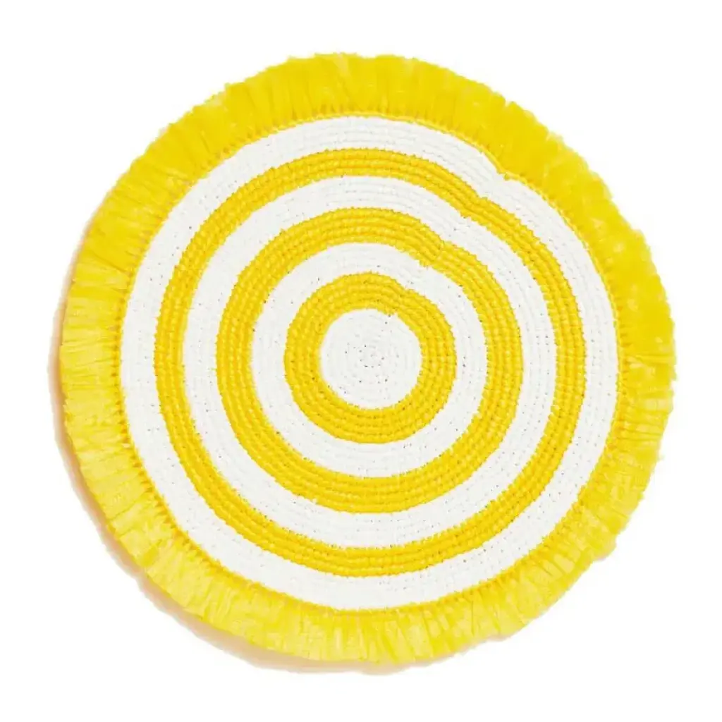 Woven Fringe Canary/yellow Orange 5.5" Round Coasters, Set Of 4