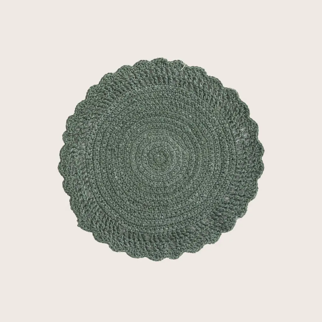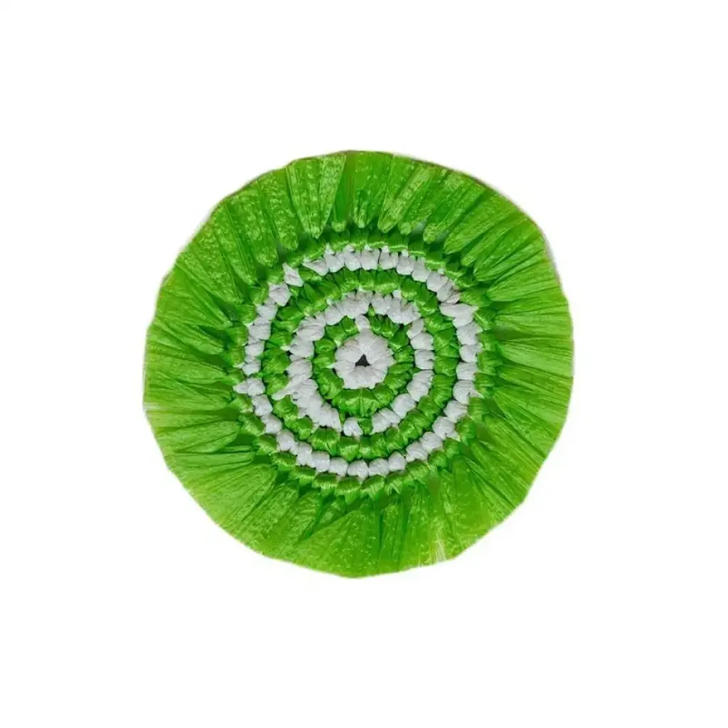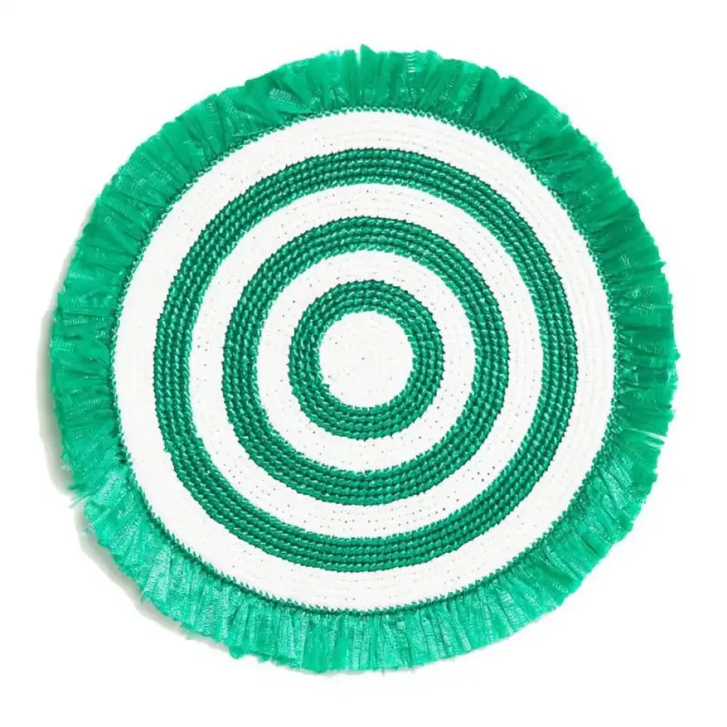 Woven Fringe Green/white 5.5" Round Coasters, Set Of 4