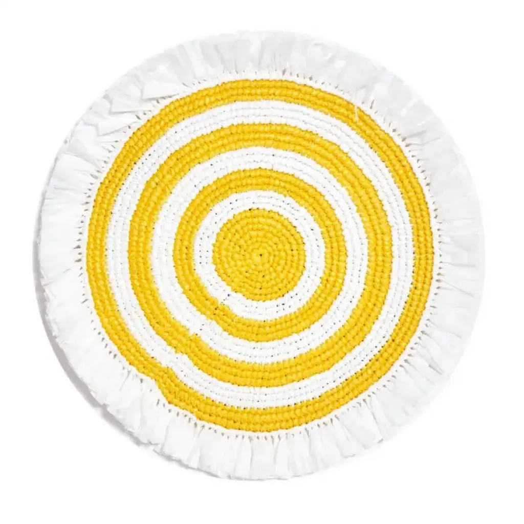 Eye-catching colors, natural rattan, and the fun of fringe all combine to create these cheery coasters hand-woven from recycled plastic twine and rattan. Available in five colorways, these unique coasters look stunning paired with colorful cocktails. Enjoy with coordinating Woven Rattan Placemats or have fun mixing and matching.