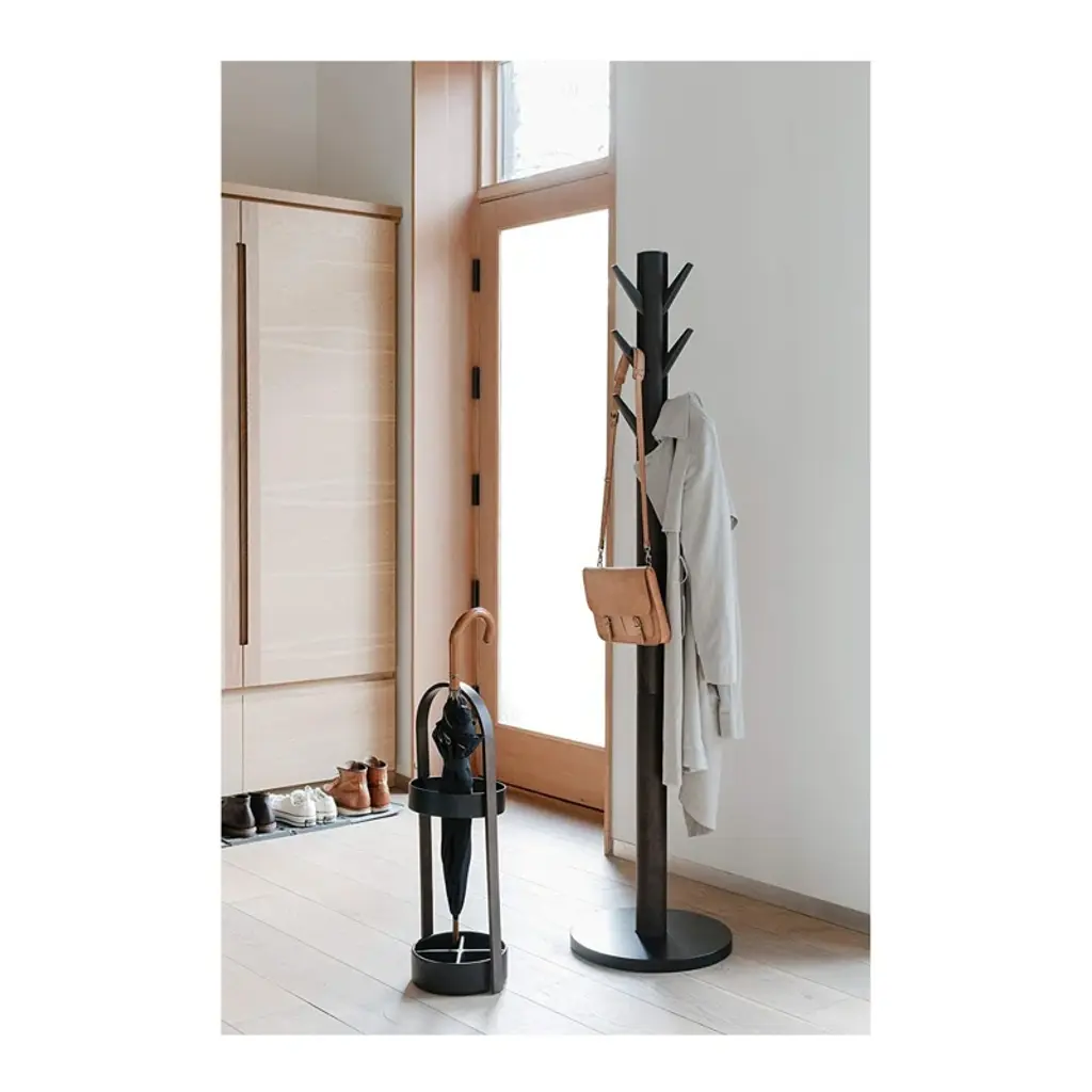 This wooden coat rack stands tall and sleek with nine flip-down hooks, offering ample storage with the ability to tuck away when not in use. Made of wood, Flapper has a tree-like aesthetic, while being entirely modern. Available in a variety of modern finishes, Flapper is sleek in design while keeping ample utility.
