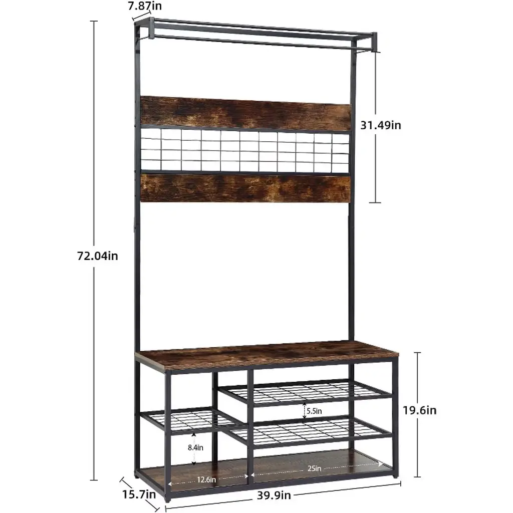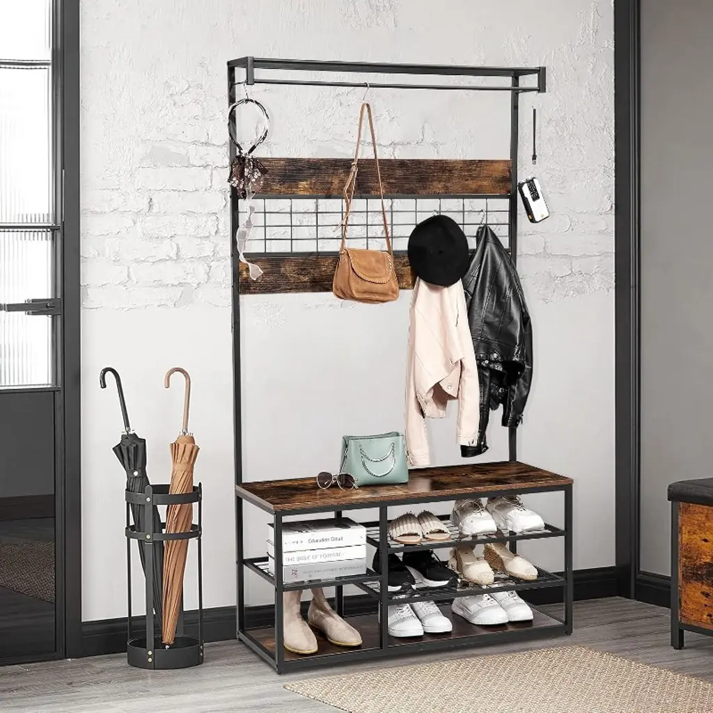 Why Choose Our 3 in 1 Hall Tree with Storage ? ✔Made of MDF board and strong metal frame can give long-lasting durability ✔Easy to clean and maintain,just need damp cloth to clean ✔Open shelves design easy access to everyday essentials ✔Large load-bearing capacity,the bench table can bear up to 200lbs ✔Can adds aesthetic appeal to your home ,making it an elegant accent piece ✔Super perfect for Living Room/Bedroom/closet/entryway/Apartment ✔be serves as coat hooks, a bench or shoe shelves to optimize space utilization