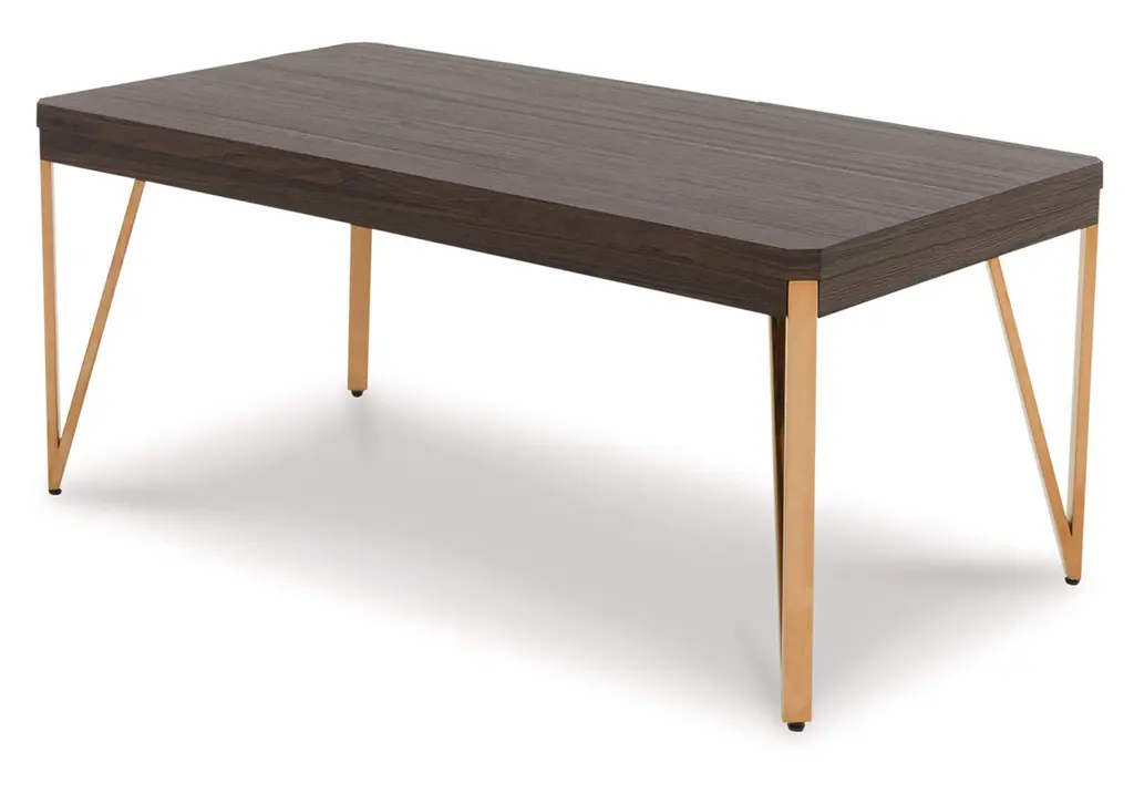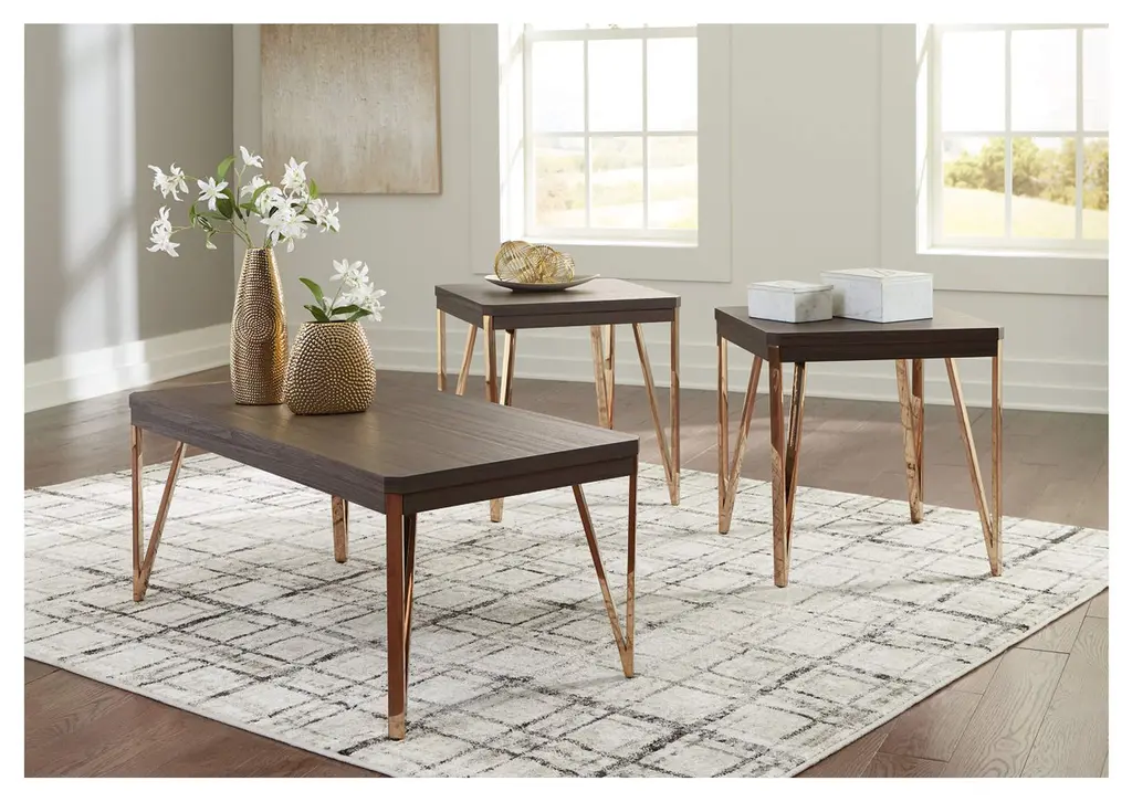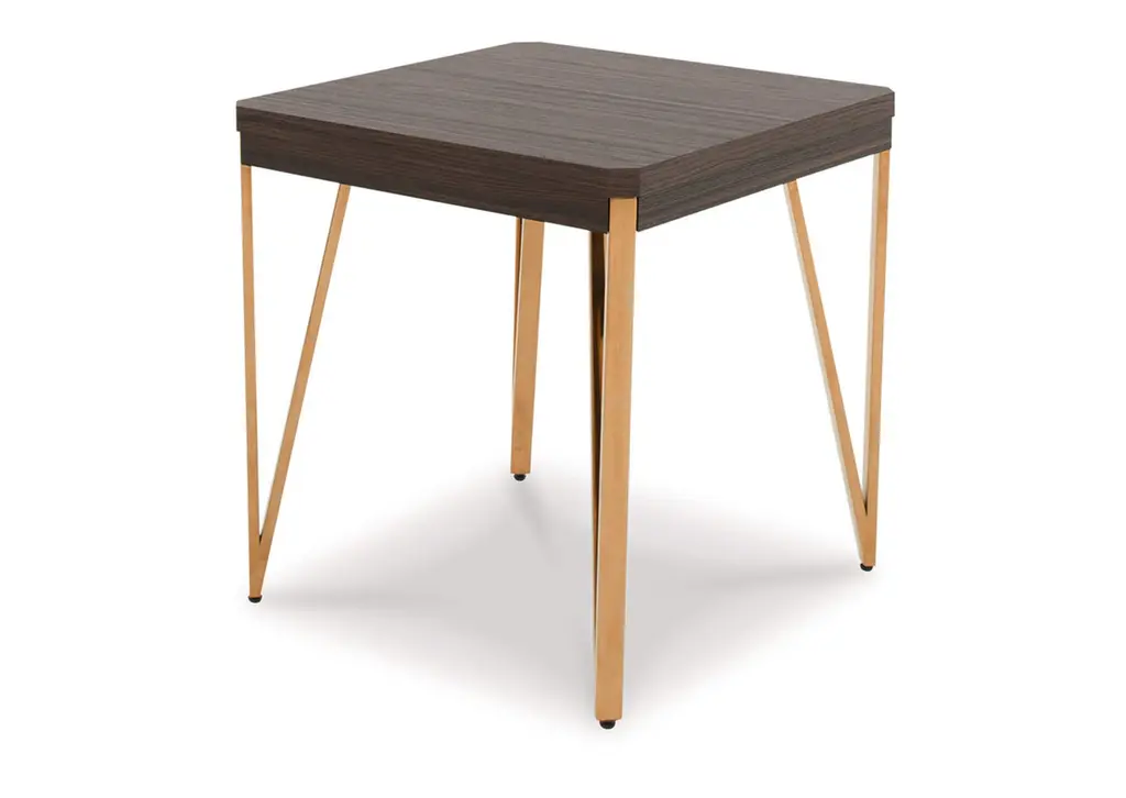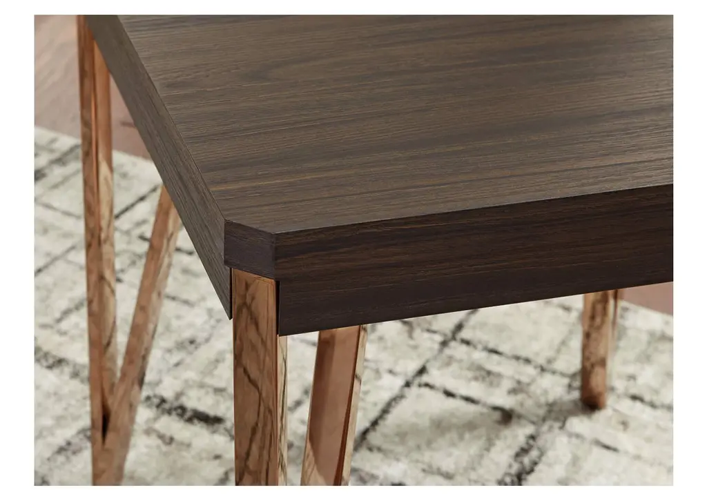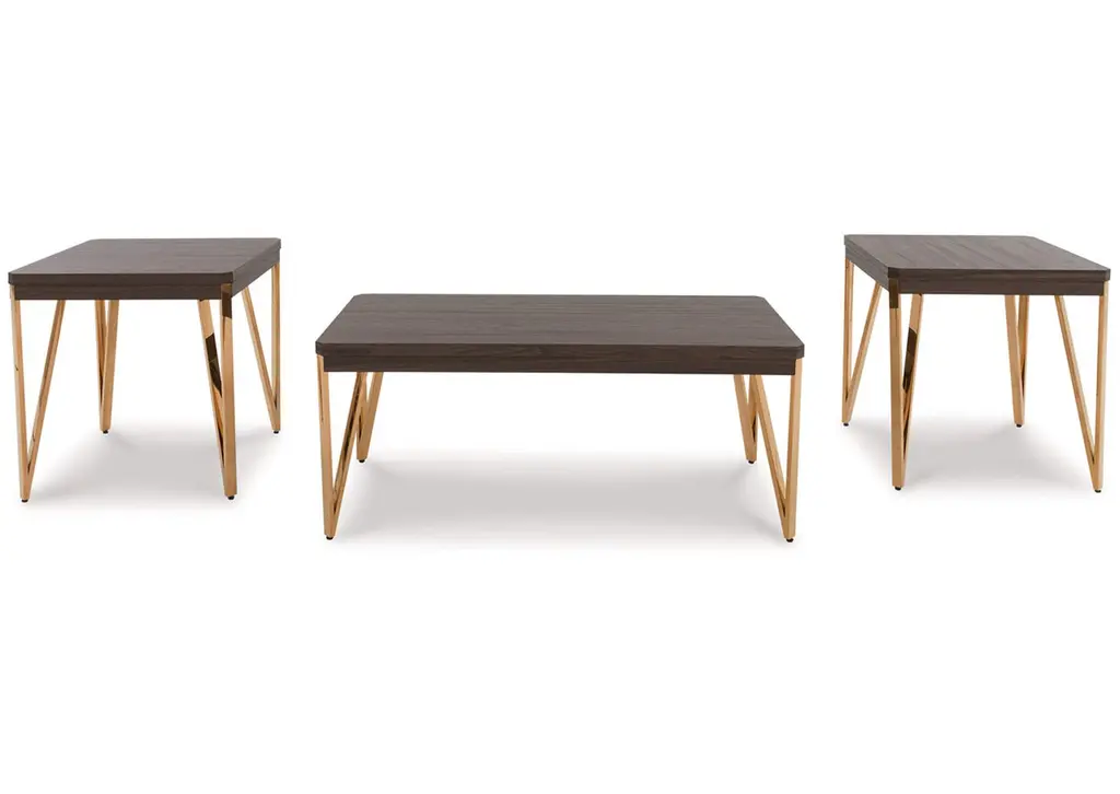 Nothing but the bare essentials here. Combining contemporary styling with a modern vibe, the Bandyn table set accentuates your sofa or loveseat in the simplest way. A warm goldtone metal frame and rich dark wood-tone tabletop exemplify minimalist sophistication. Anchor your living room furnishings with this stunning statement. Weight 94.000 lbs. (42.3kgs.)
