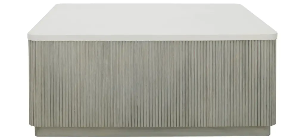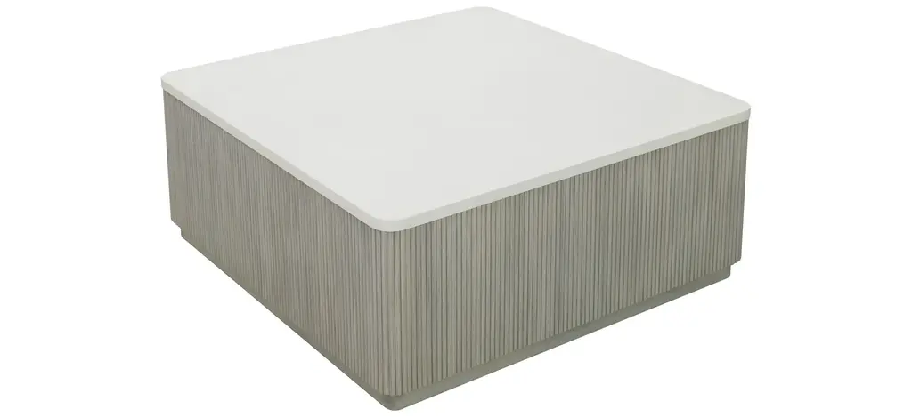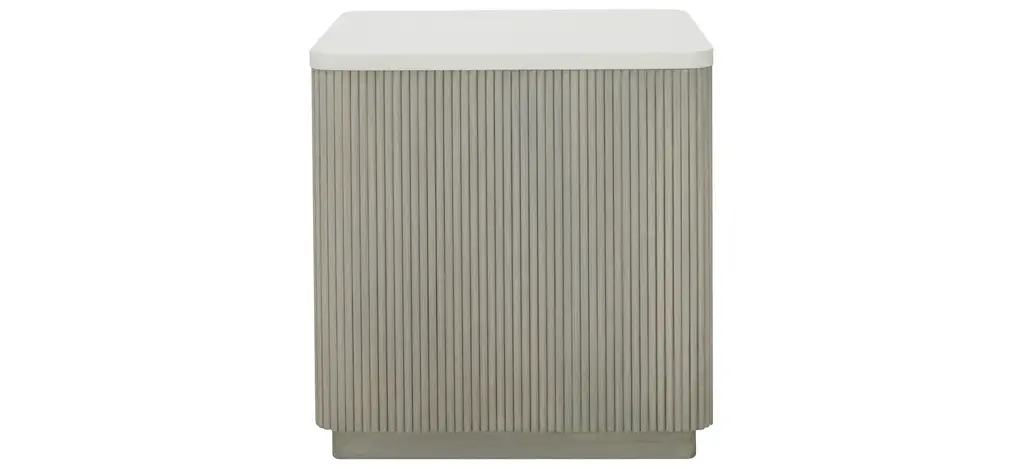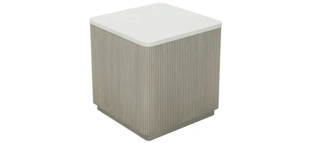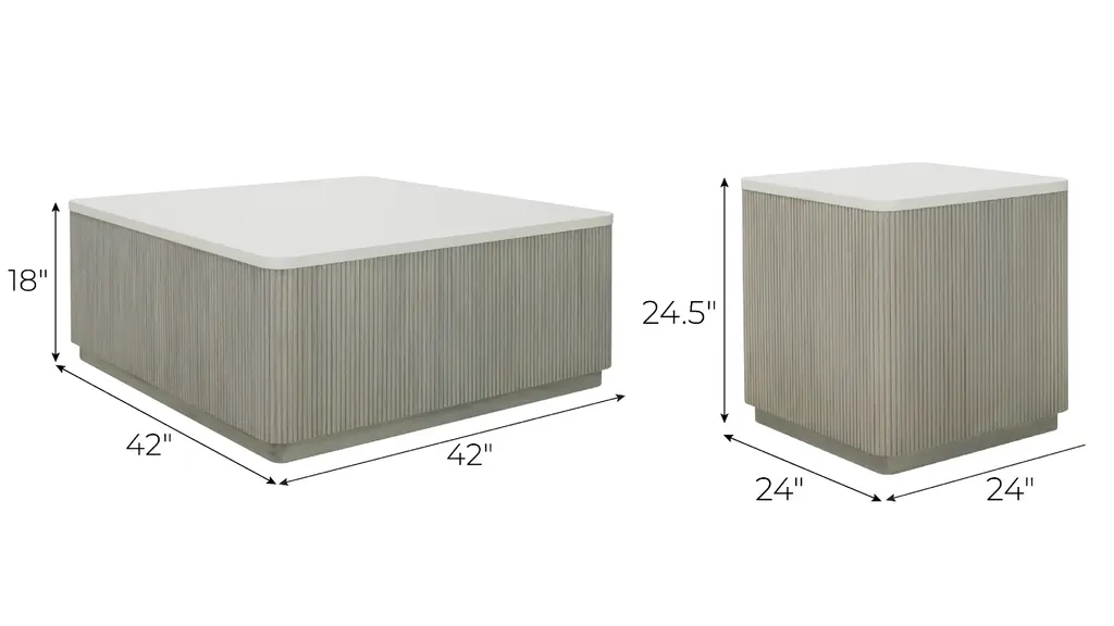 Make a statement of naturally modern style with the Finnegan 3-pc. Occasional Table Set. The distinctive reeded sides, and the rounded corners of the faux stone top, express a pleasant organic vibe. Picture this table set in a living space with lots of natural light to highlight the balance of materials and neutral tones.