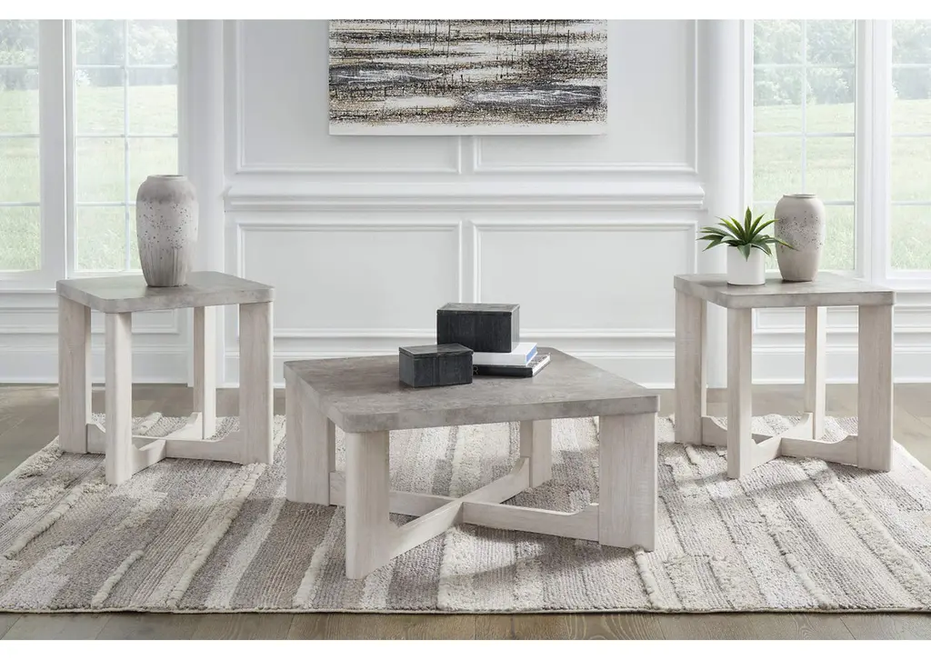 Isn’t it time for a change? The Garnilly table set captures the essence of today’s casual contemporary design. The thick tabletop sits on profiled legs and a stylish cross stretcher with a whitewash wood grain look. These tables exude a relaxed flair that’s sure to complement your good taste. Weight 147.000 lbs. (66.15kgs.)