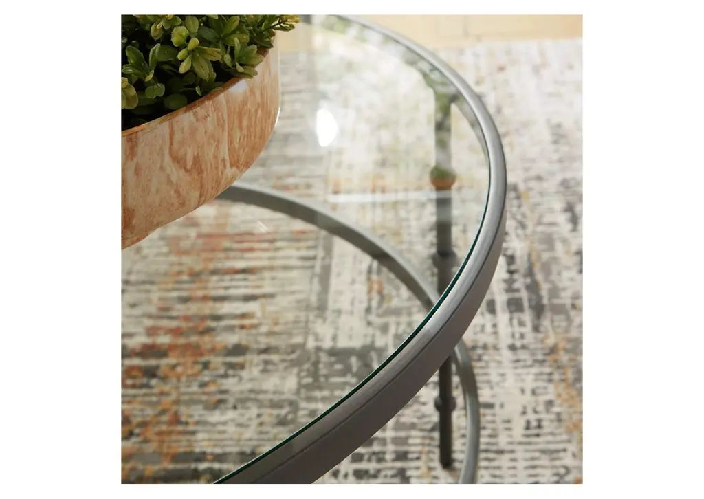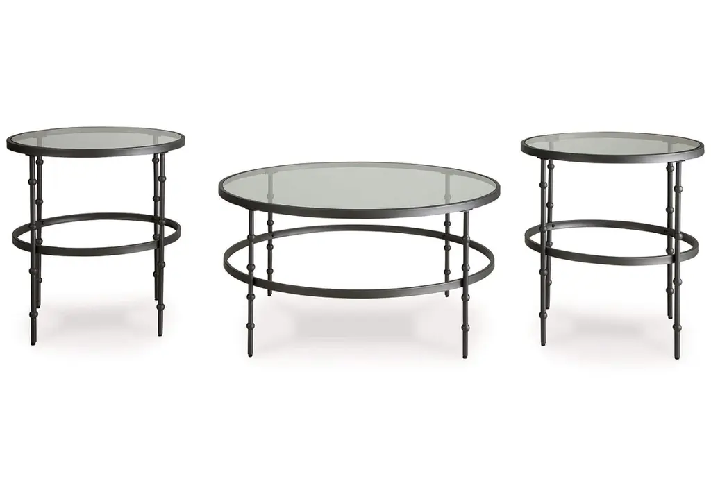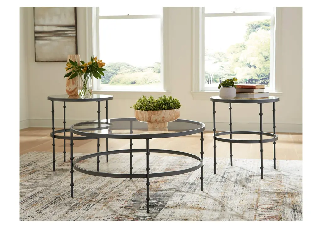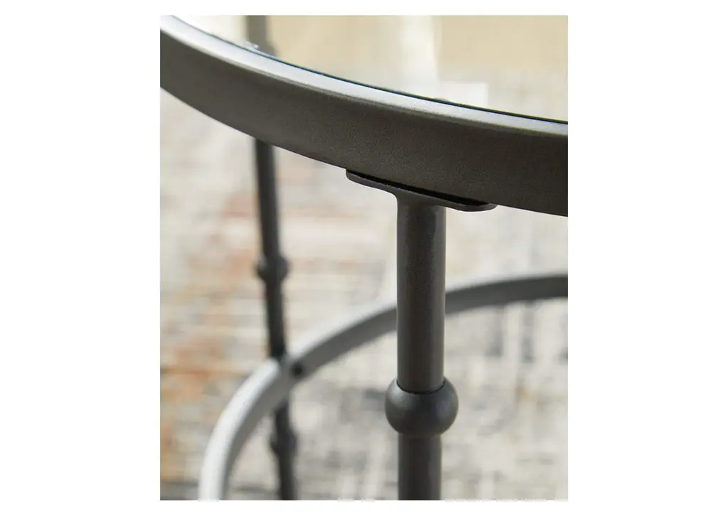 Talk about sleek and chic. Trendy metal frames and a rich gunmetal finish are a perfect pairing with the Kellyco table set. Add tempered glass inserts to the design and you’ve got a highly transitional contemporary look that’s a cut above. This set is ideal for displaying treasures or holding beverages while entertaining. Weight 67.000 lbs. (30.15kgs.)