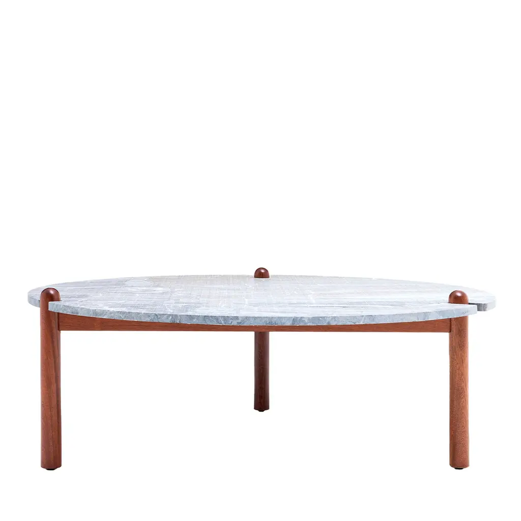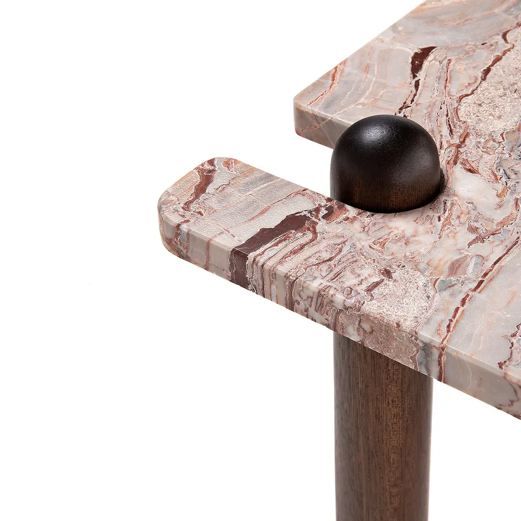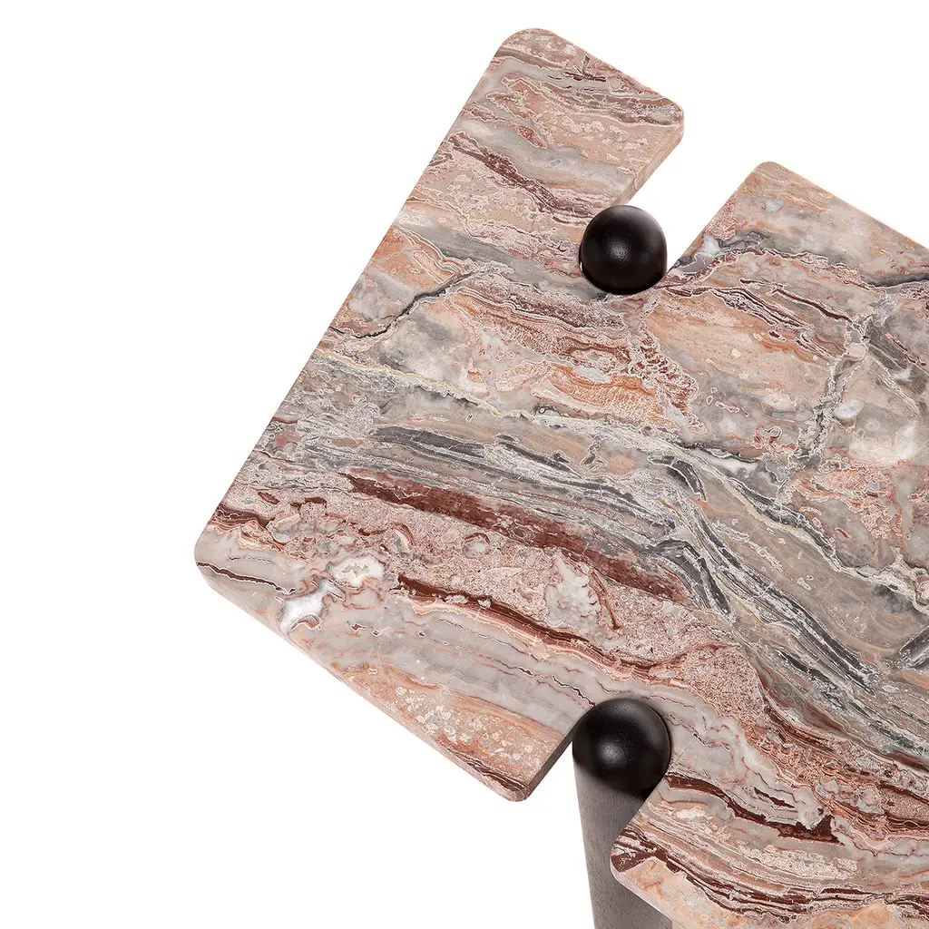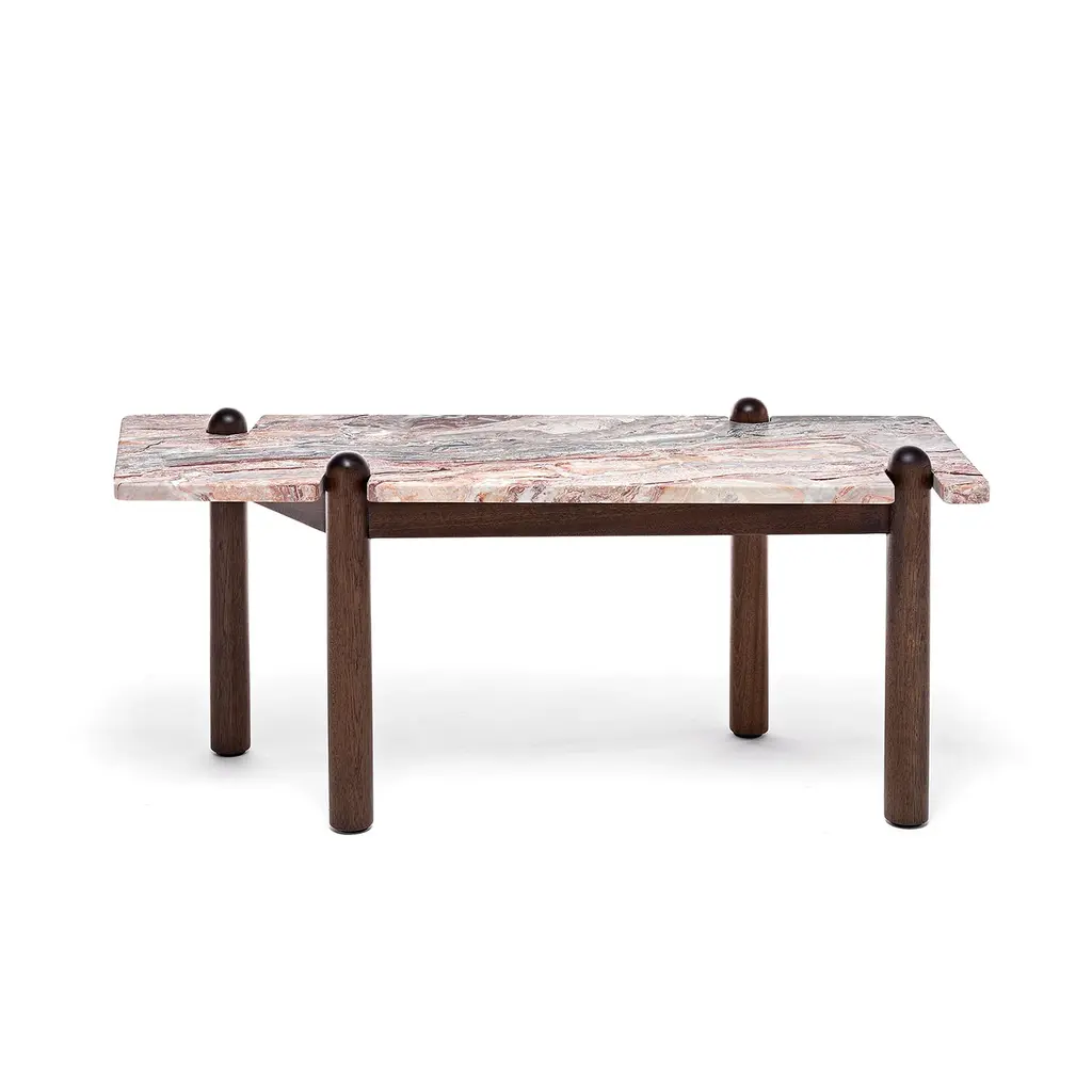 Characterized by an asymmetrical cut of the Arabescato Orobico Red marble top that gives a powerful dynamism to the whole piece, this exquisite coffee table by Massimo Castagna combines the majesty of mahogany wood with the precious veining of marble. This piece is available for customization upon request. An outdoor cover is recommended to protect the piece when left outside, please contact the Concierge for details. If the products are placed completely outside, nightcovers that can be purchased at an extra price are recommended. Please contact the Concierge for further information and options.