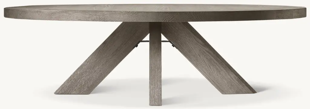 A bold play of lines and planes characterizes our 1960s French X-Base collection designed by Luay Al-Rawi. The geometric base, an artful junction of dramatically raked legs, balances a substantial top, lending a striking, architectural sensibility. Crafted of oak, the wood's rich, rustic texture is a counterpoint to the linear look. SHOP THE ENTIRE COLLECTION