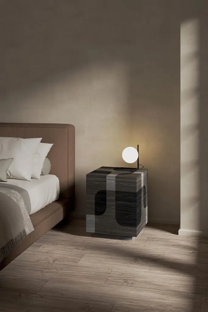 2 Bodega Night Stands And 1 Coffee Table In Black Wood Marquetry, Joel Escalona