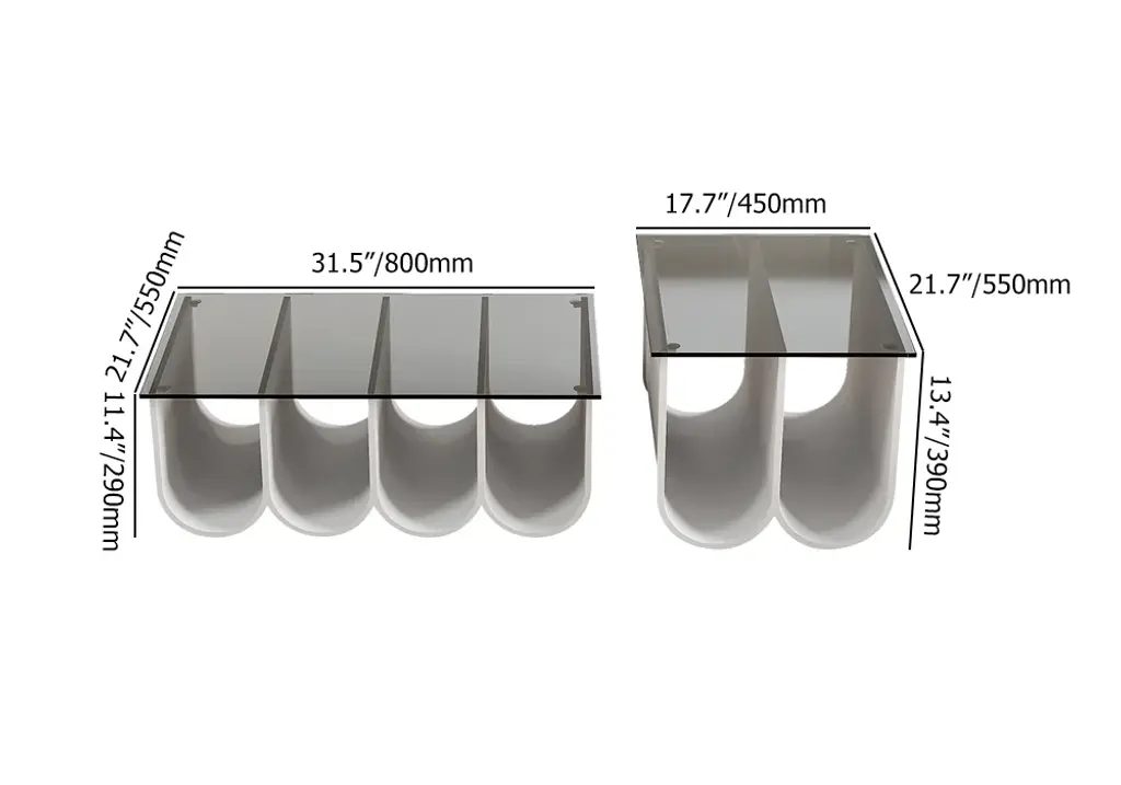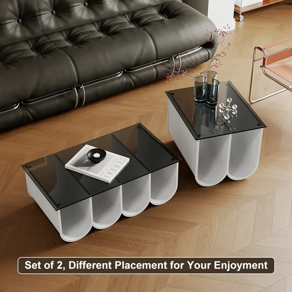 This 2-piece set features a sleek design with a glass tabletop and a sturdy metal base. The combination of glass and metal creates an elegant and contemporary look. with an enduring color of clear black, and white, these coffee tables effortlessly complement any interior style. Whether you use them together or separately, they provide ample surface area for your beverages, books, and decor. Upgrade your living room with this chic and versatile coffee table set that combines functionality and modern style beautifully. 【Arrange as You Like】The 2-piece set allows you to place it freely, and also better adapt to different sizes of home. 【Stability and Load-bearing】Unique arched base design with a white finish gives it a personalized look. As well as the metal material, making it very solid and durable.