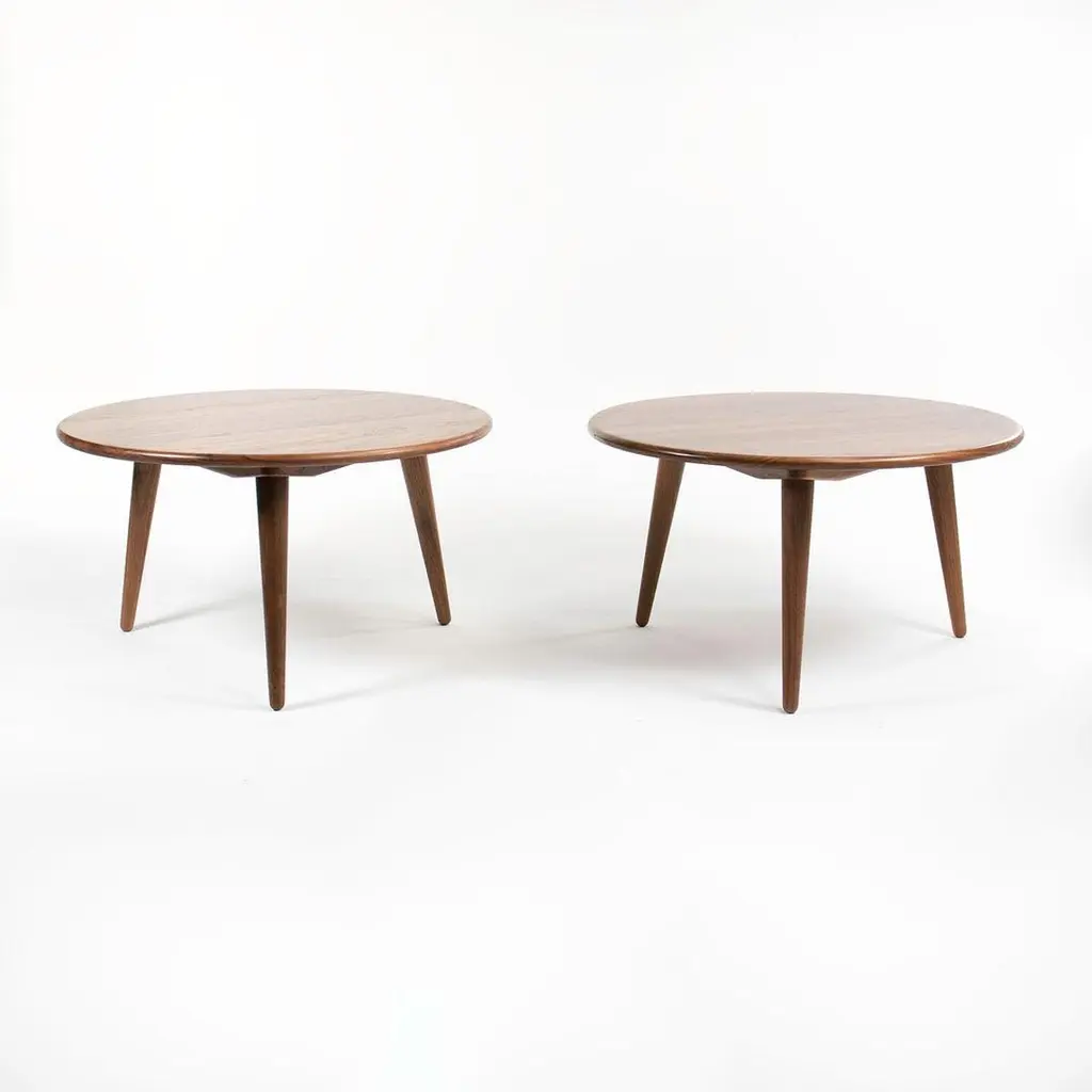 Listed for sale is a CH008 Coffee Table, made with a solid walnut top and legs. The table, designed by Hans Wegner and produced by Carl Hansen & Son in Denmark, dates to circa 2021 and is guaranteed as authentic. Condition is excellent with only minimal wear. See photos. The price listed is for one table. Two are available. The table measures 30.7 inches in diameter and 17.3 inches high. Genuinely faulty goods will be replaced or money refunded on a case by case basis, however we must be advised of any faulty goods upon receipt of the item. It is the customer's responsibility to pay for return shipping and ship the item back to us. If the item is found to be faulty, we will also refund the postage cost. If there is no damage to the item, but a return is approved, the buyer will be responsible for both the initial and return shipping cost. It is at our discretion to refuse the refund of undamaged goods. If an order is placed and you would like to cancel the order, please notify us immediately. Any refunds will be processed via the same means that payment was made.