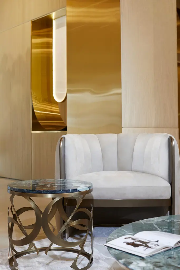21st century Art Déco Elie Saab Maison Calacatta Gold monogram coffee table, ItalyThe delicate intertwining Elie Saab monogram transforms this coffee table into an eye-catching design piece with a contemporary spirit. Made in Italy.Composition: Structure in Bronzed Brass and Calacatta Gold Marble Top.The Elie Saab Maison collection perfectly blends together all essential elements of the project; the uniqueness of the ELIE SAAB Brand signature, the research in design, and the artisan excellence of Made in Italy.Carlo Colombo, a remarkable Italian architect and designer, has translated the vision of Mr. Saab into the collection. A collection that has been designed to convey the strength of the artistry it embodies, the attention to detail, the richness of the materials in pure ELIE SAAB style.Top available also in all marbles & stones from the collection: Nero Marquinia, Arabescato Vagli, Alpine Green, Red Lepanto Marble and Patagonia Granite.Available also in the following dimensions:Diam. 110cm x H32cm Diam. 140cm x H32cm W152cm x P103 cm x H32cmCustomisation available.Lead Time is between 13-14 weeks. Please note that the company will be closed from 7th till 25th of August 2023.