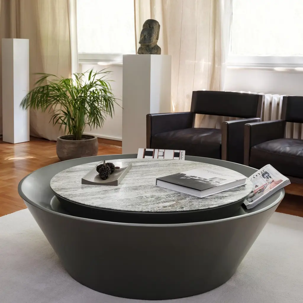 21st Century, Modern, Contemporary, Wood, Marble, Round, Drop Coffee Table