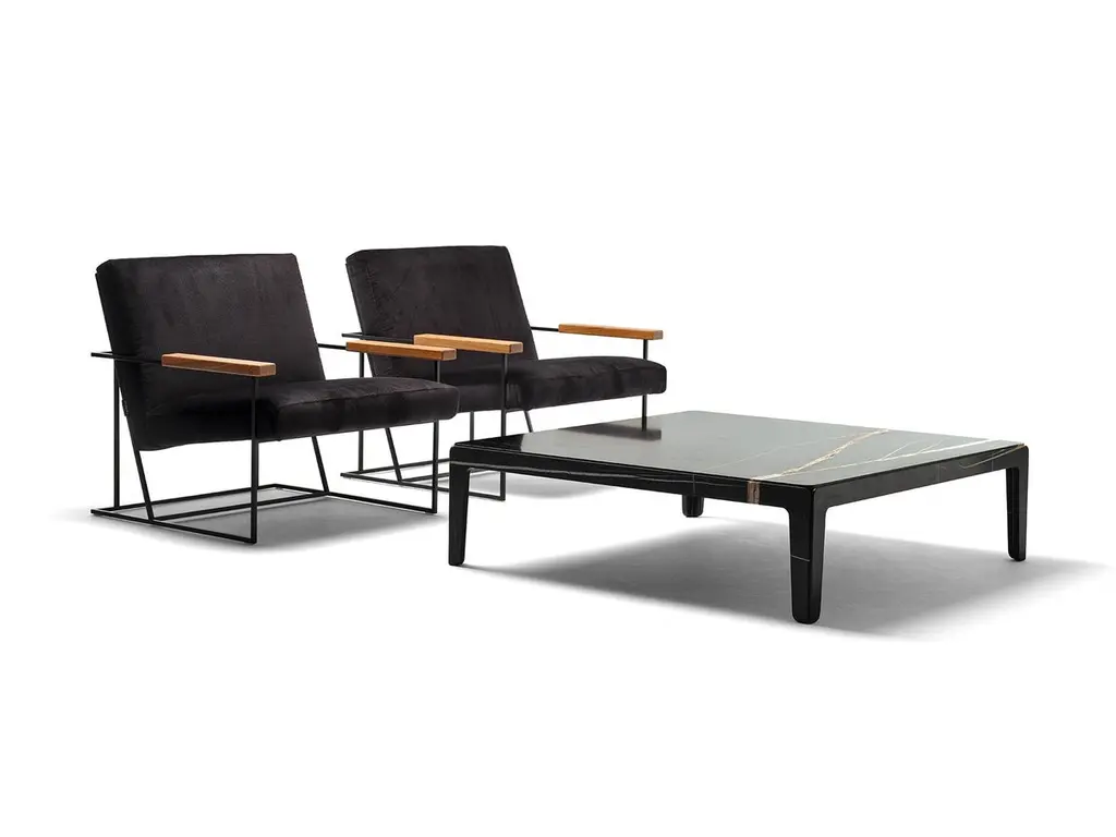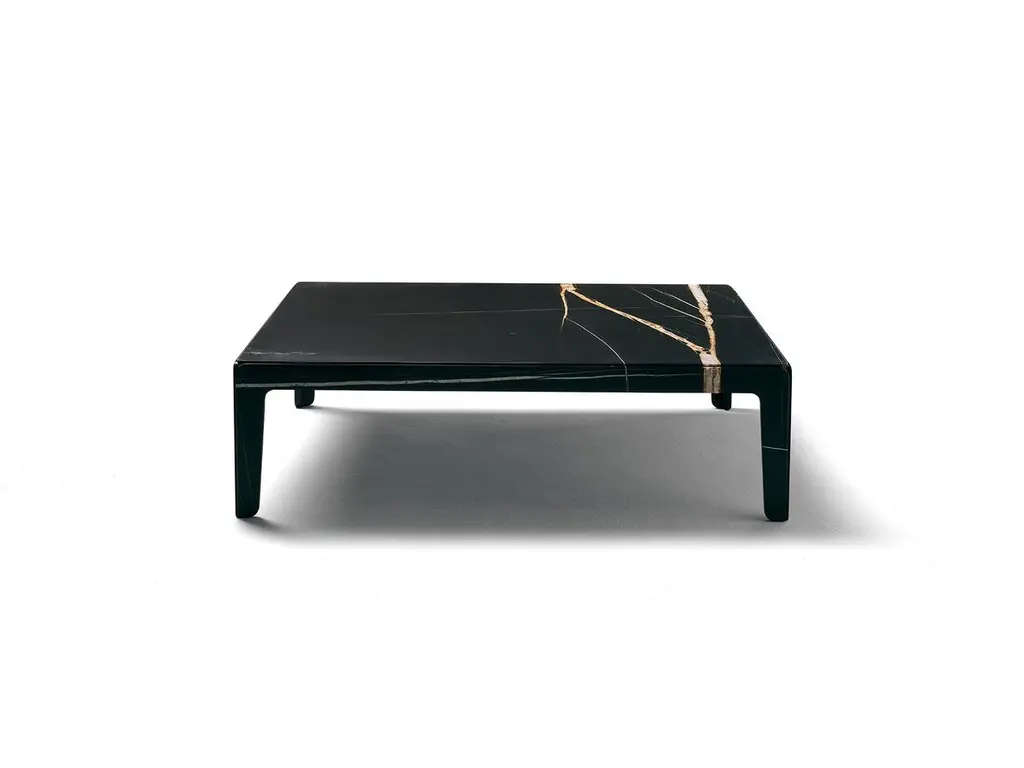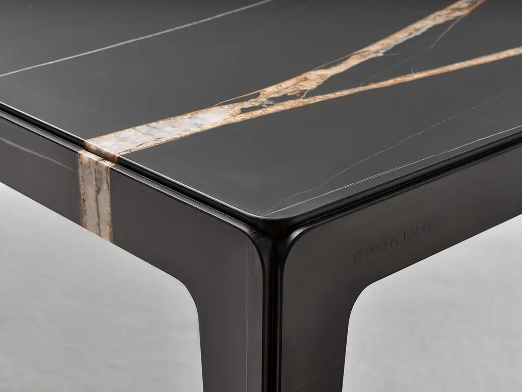 A 4-legged table completely made of stone. Through a simple trick the table, which is in fact the assembly of five parts, appears sculpted from a solid block. The four lateral elements, once they are assembled with the top, become structural without the need for additional parts that would in turn compromise the sculptural effect of the piece. The surface of the table is treated with a slightly three-dimensional weathered finish that further increases the preciousness and uniqueness of the natural material and that in time hides potential scratches and stains.Sahara Noir marble. Matte finish. Other stones and finishes are available upon request.