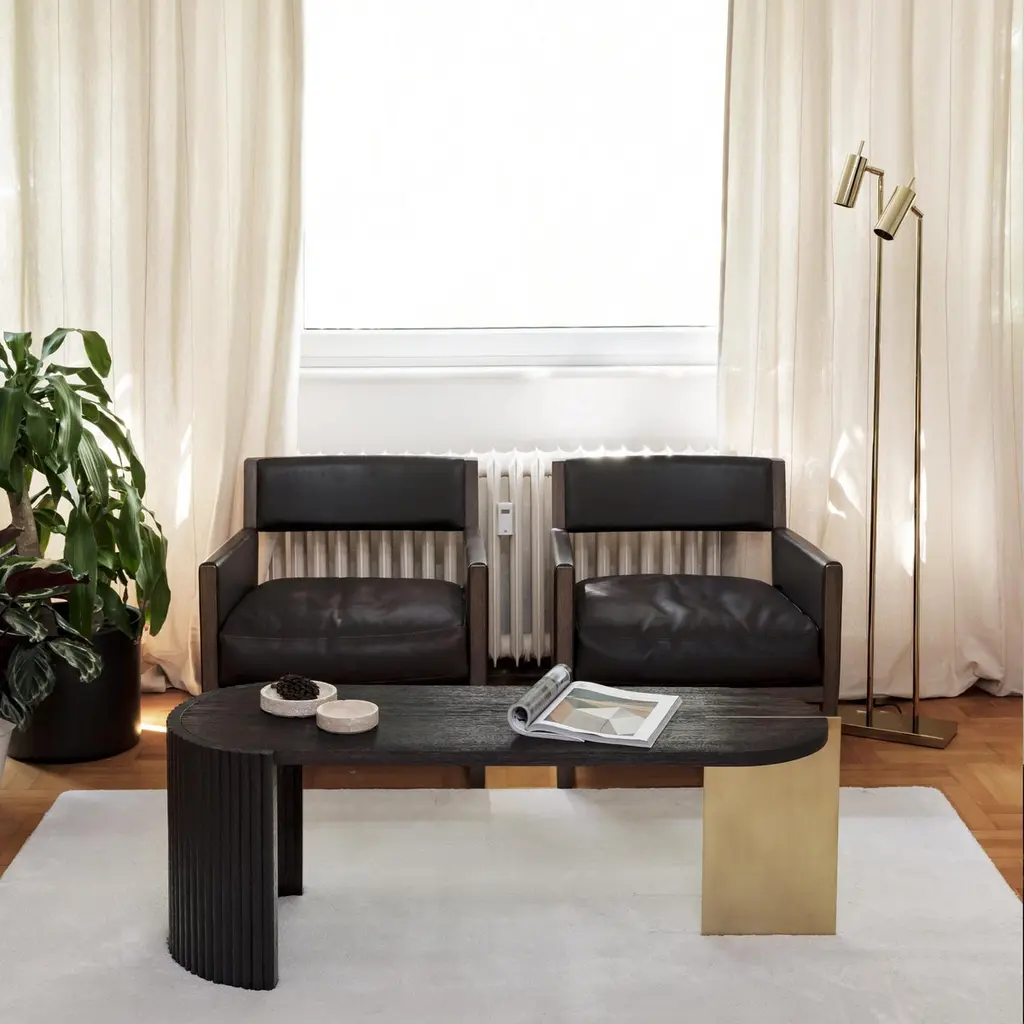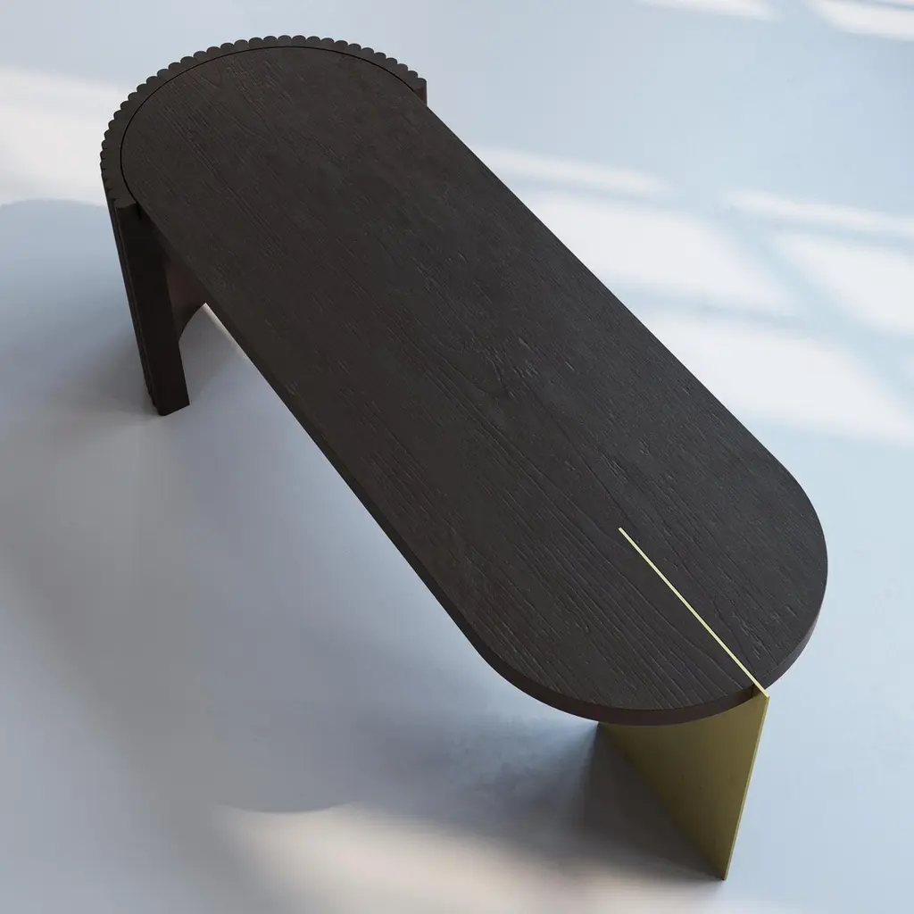 Minus coffee table.Sandblasted wood and brass.Available in different colors and custom-sizing.Designed by Buket Hoscan Bazman.
