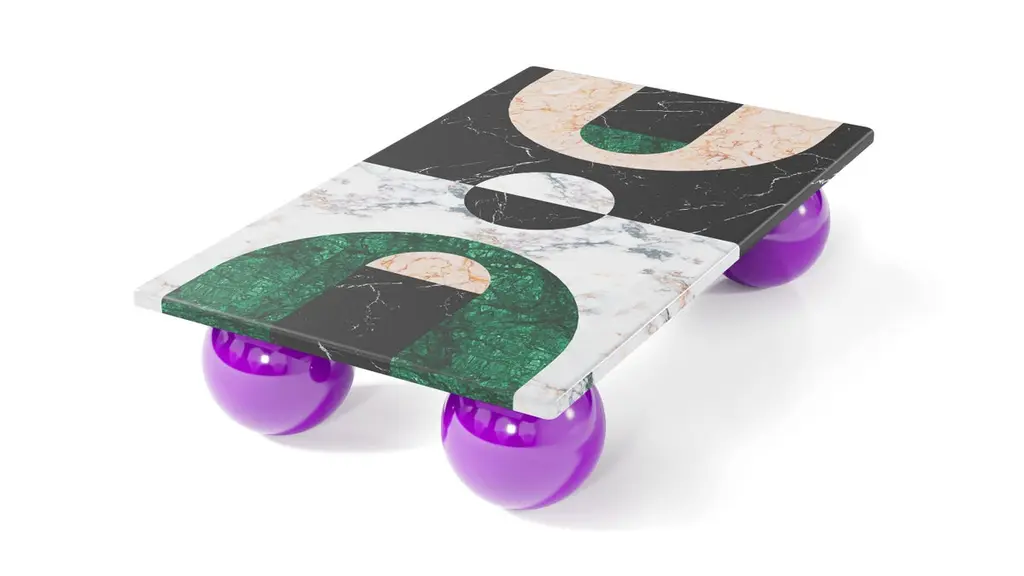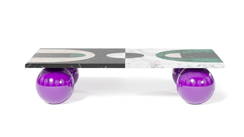 This is not a basketball court. It is WEENcourt Coffee table - part of the exclusive Alex Brokamp x Madsteez Collection. This unique object of design is a marble masterpiece, inspired by MADSTEEZ’s striking basketball court murals.This table makes a statement with unique colour and material combinations.