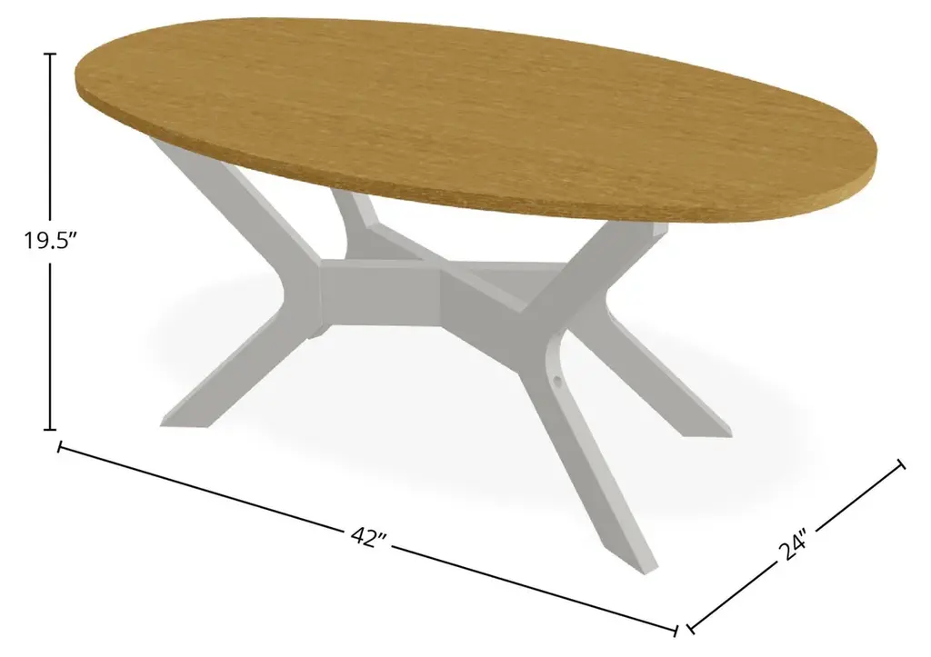 24" X 42" Oval Rustic Outdoor Coffee Table, Snow
