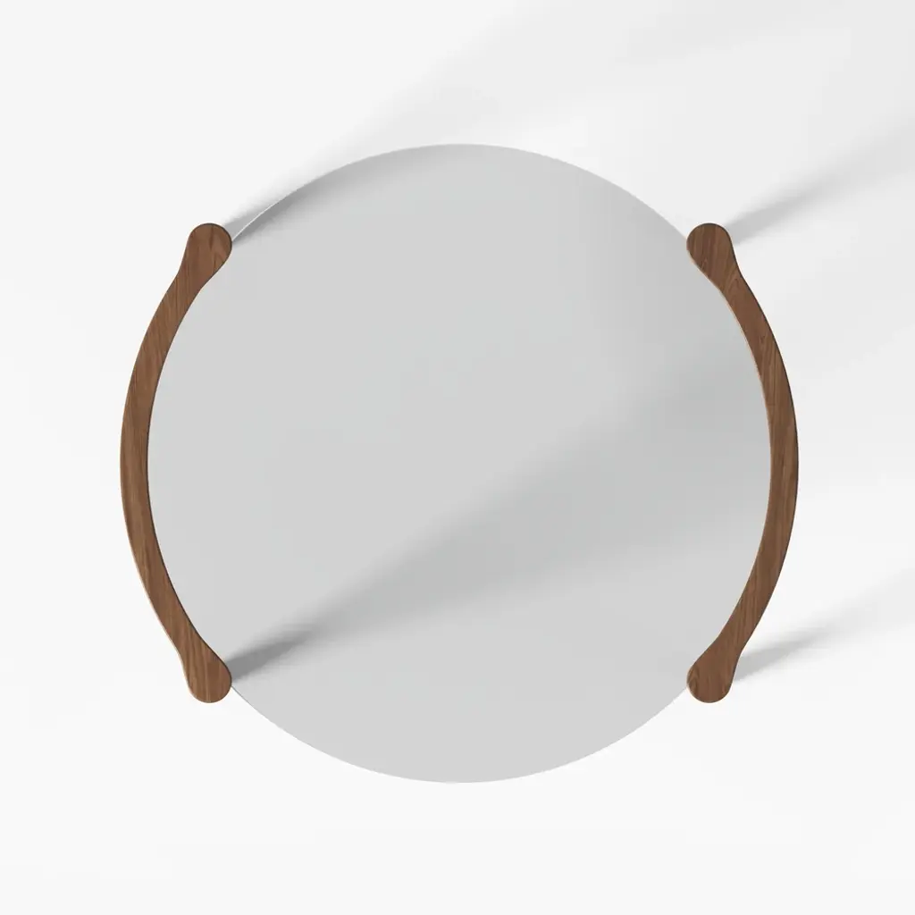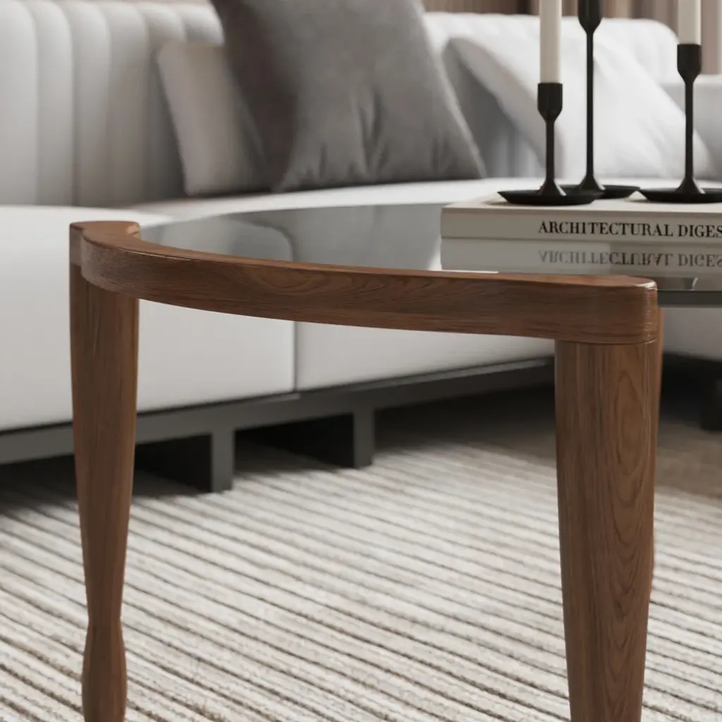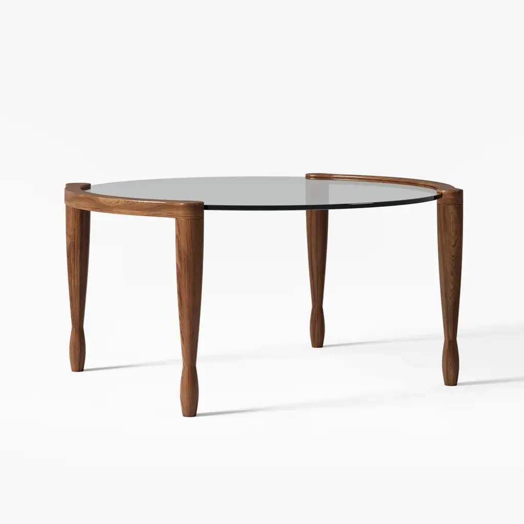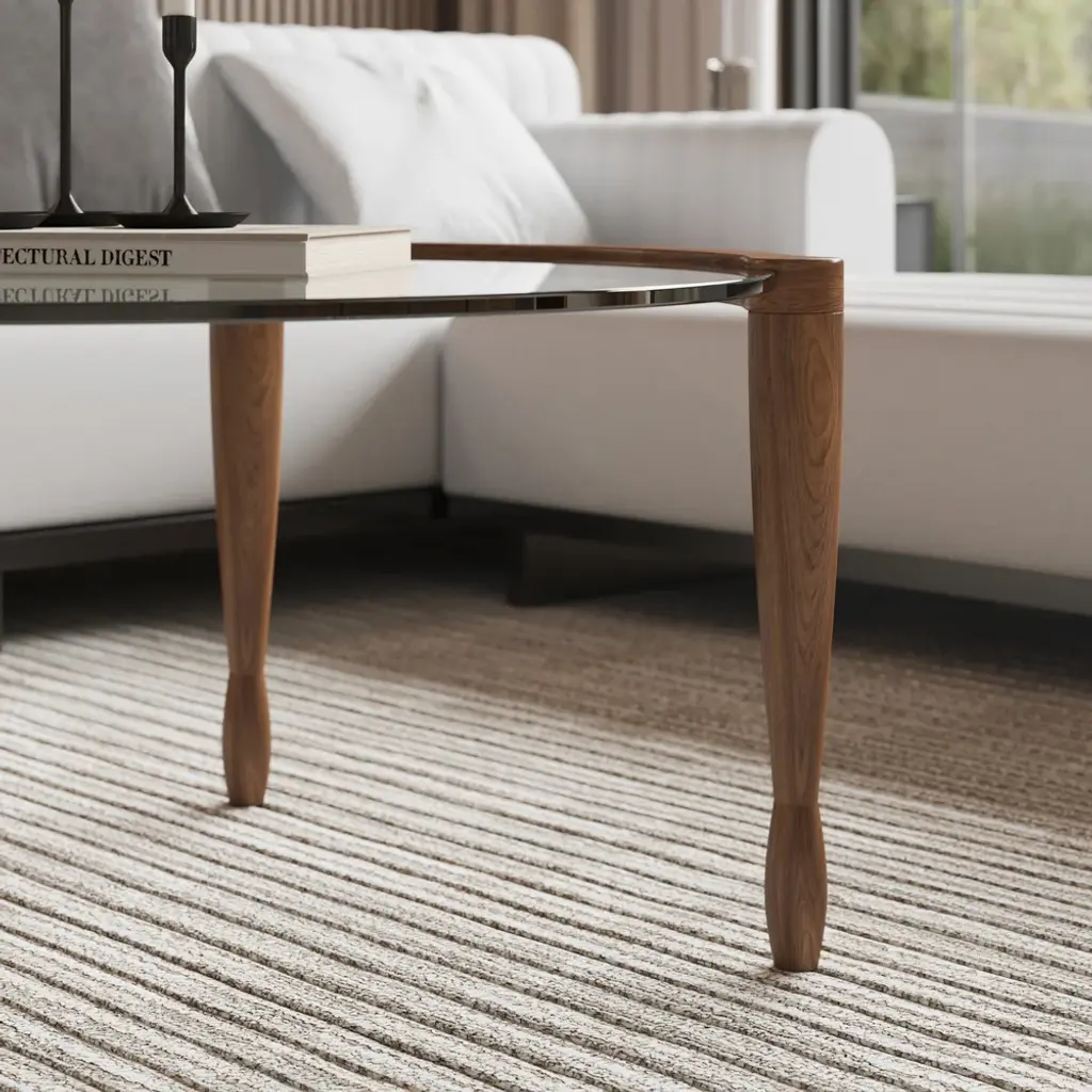 32" Round Glass Mid Century Modern Coffee Table With Wood Legs