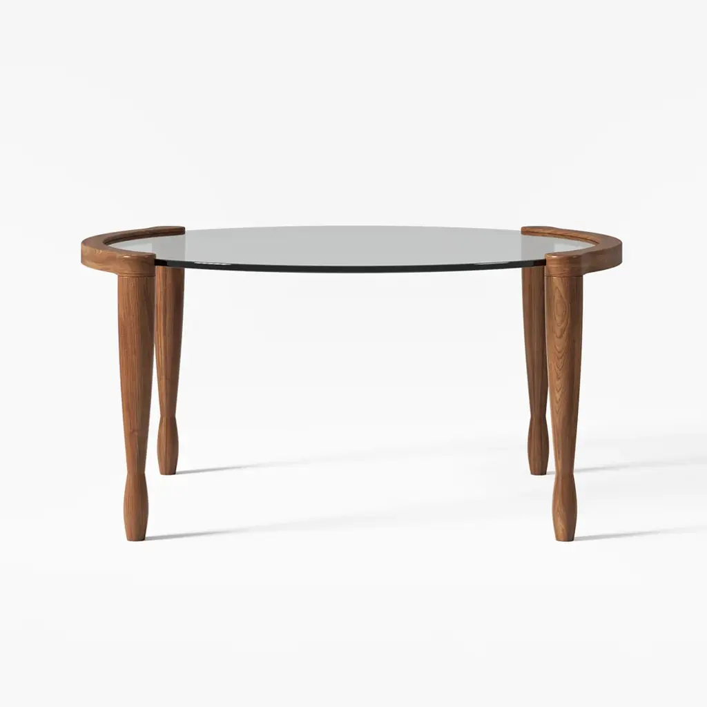 This coffee table is on a turned frame made of solid ash wood, encircling the top of transparent glass. A table made in the Art Deco style. That lends a sophisticated feel to any living room. Whether you place heavy books, decorative items, or beverages on it, rest assured that it can easily handle the weig