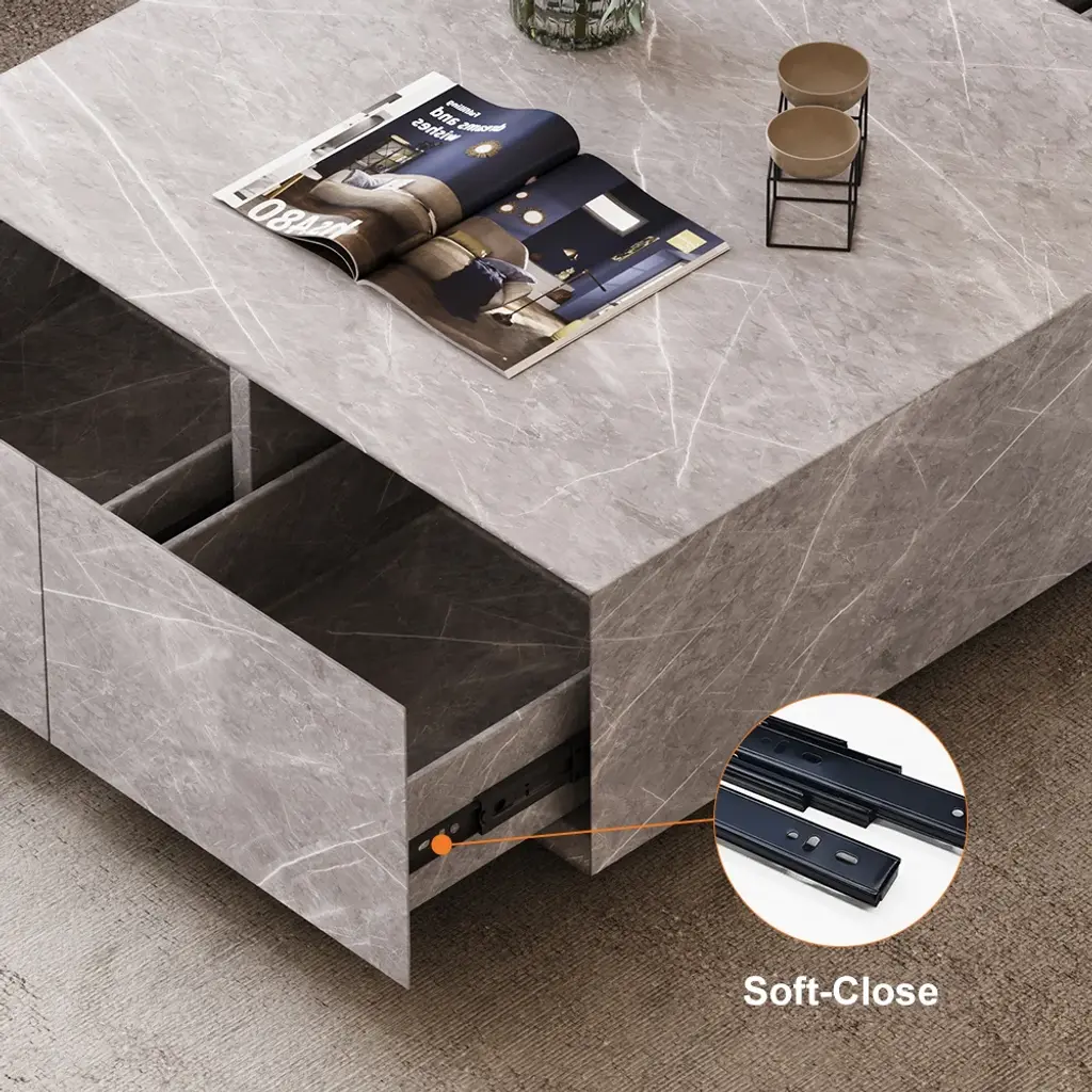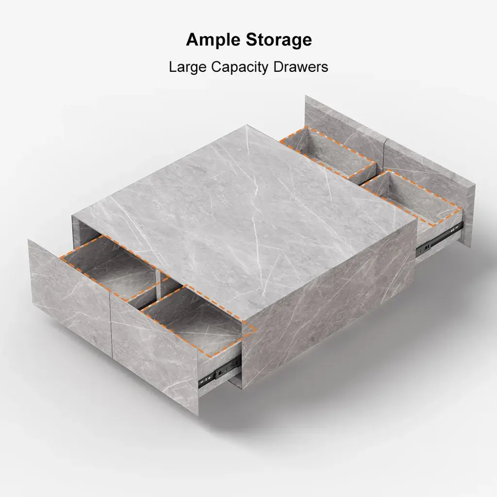 This coffee table sets the tone for your whole living space with its appealing presence Concrete pattern provides an elegant and bold statement that will enhance the exquisite vibe of your home With 4 drawers, this coffee table combines style and function in one