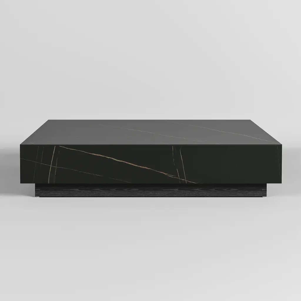 39" Square Sintered Stone Block Coffee Table With Wood Base