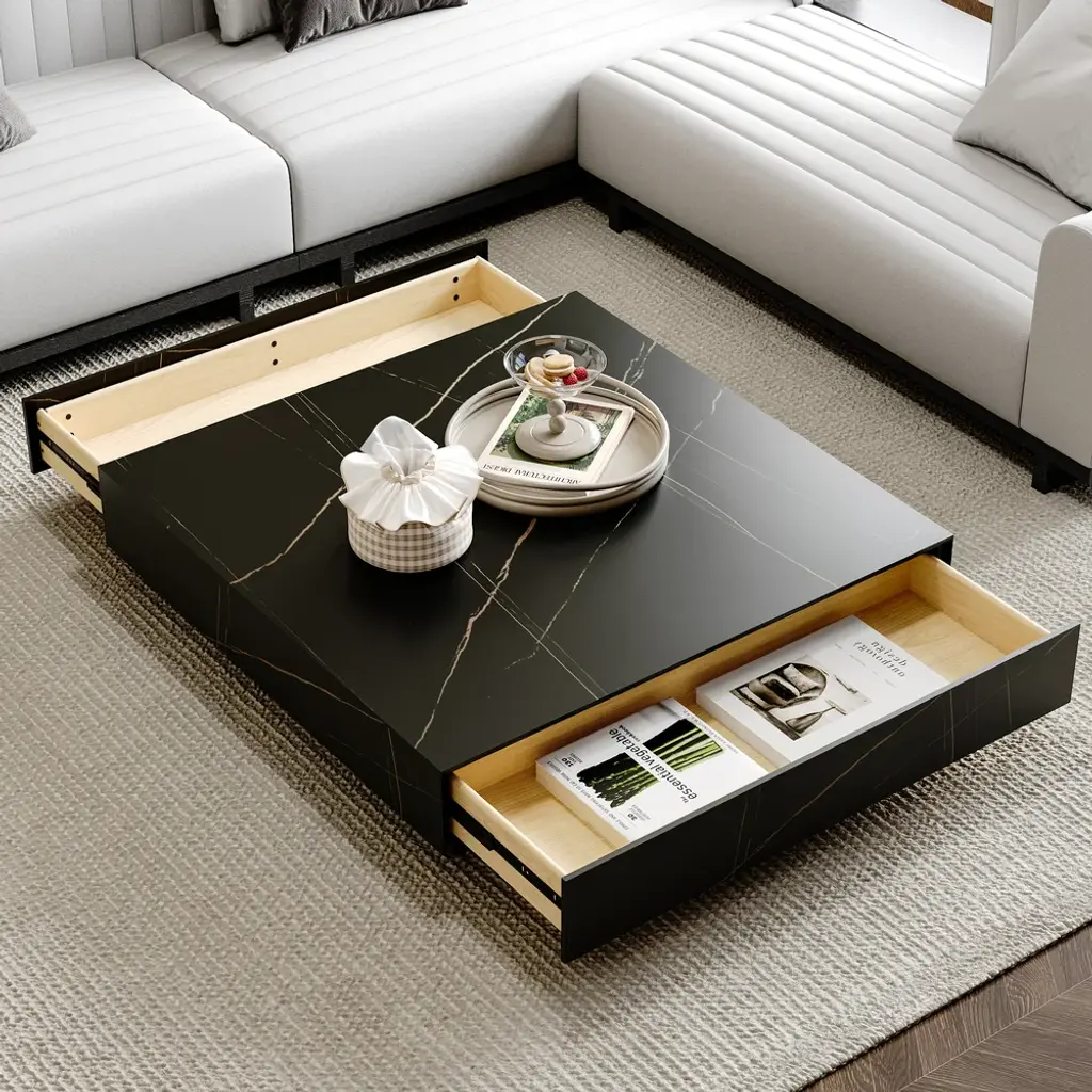 Elevate your living space with this exquisite marble-inspired coffee table featuring two spacious drawers. The sintered stone top resists heat and scratches while offering easy maintenance, blending luxury with practical functionality.