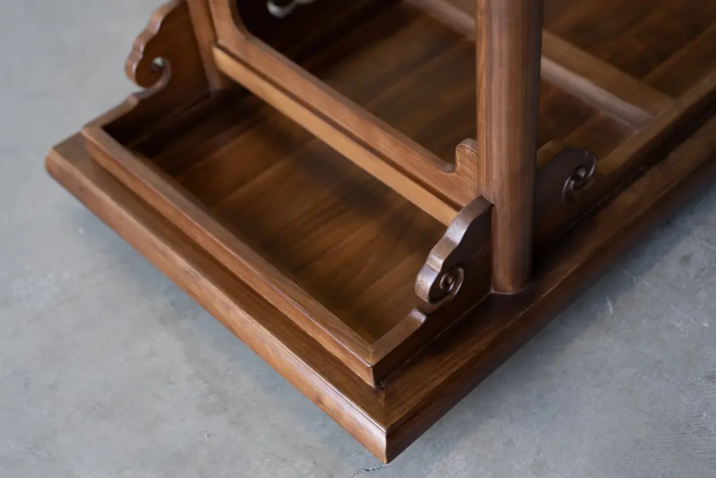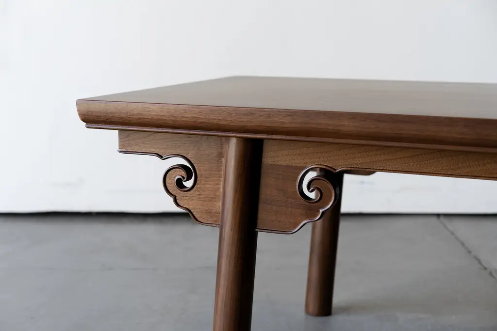 Part of the Sun at Six 5th anniversary special collection, celebrating their history and the first Ming dynasty era pieces that Antares’s mom worked on over 30 years ago when she learned furniture. The Cloud Coffee Table is one of 3 types of kang table, a feature of a Northern Chinese housing style with its own unique set of furniture. The table features embellished apron head spandrels around the legs, and the tabletop includes a frame (two long edges with tenons, and 2 short edges with mortises) and "floating" panel, which floats freely in the 4 edges, allowing the panel to expand and contract with changes in temperature and humidity. The frame also includes recessed slots allowing for mortise and tenon connection of the apron and legs as well, which is tightened tightened by the weight of the table against the leg joints.
