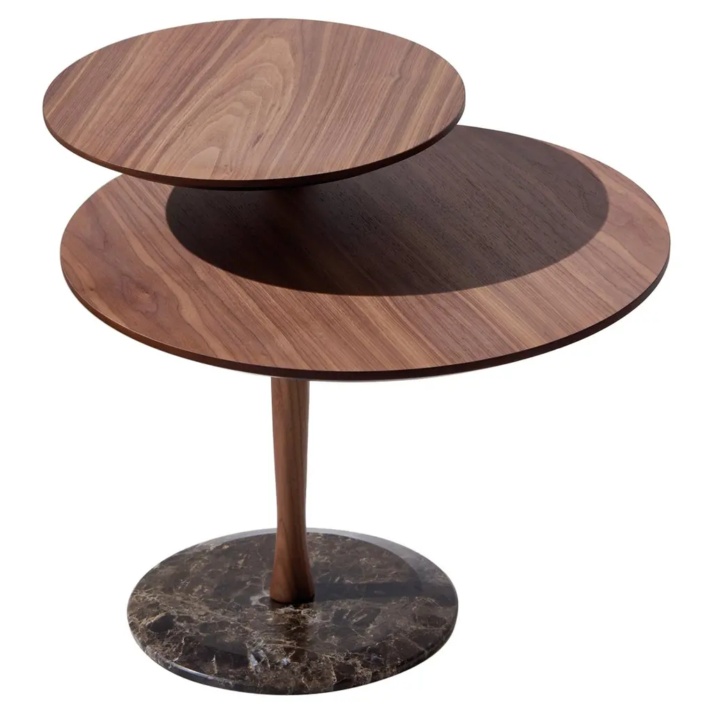 Created by Piero Lissoni, these cylindrical and modular tables have been designed for the corporate or hospitality environments. Available in either standard or coffee-table heights, with round tops in various size options, these accessories evince a soft-spoken elegance, and come in a range of materials that chime beautifully with the finishes available on Cassina’s other pieces. The simple lines, appropriate to many settings, are set off by the quality of the materials used. These include solid ashwood, and four types of marble. The glass tops, meanwhile, also come in numerous colour options. Top · Marmble bianco Carrara, nero Marquiña, grigio Carnico, Emperador, Verdealpi, Portoro, Calacatta, Rosso LevantoFinishing: oil-water repellent. Top in solid american walnut wood, or black painted solid ash wood. · Top in alluminium, laquered (colours as per price list). · Float tempered glass, backlaquered with mirror effect (colours as per price list). · Stem in extruded aluminium and topsupport in die-cast aluminium. Finishing: matt laquered grey anthracite. · Base in white Carrara marble, black Marquiña marble, gray Carnico marble, Emperador marble. Finishing: oil-water repellent. Base in solid american walnut wood, or black painted solid ash wood. · Feet in grey adhesive felt pad.Models for sale:- Coffee table Ø 40 x h 44 cm, base and top in white Carrara marble- Coffee table Ø 40 x h 49 cm, base and top in black Marquiña marble
