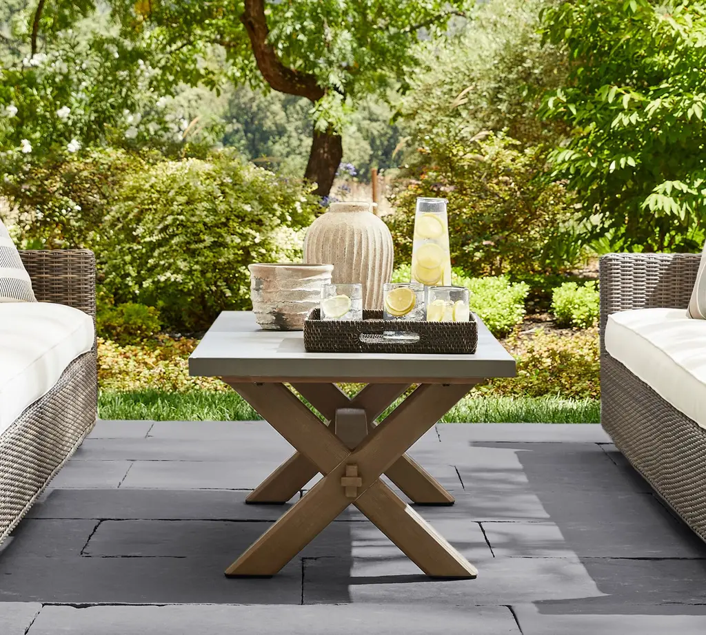 Abbott Concrete & Acacia Rectangular Outdoor Coffee Table (50"-62")