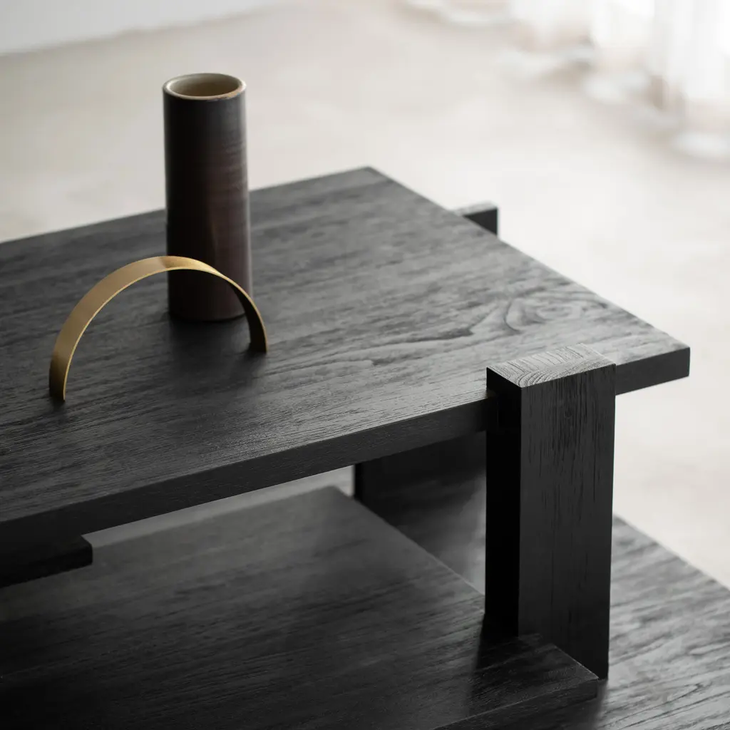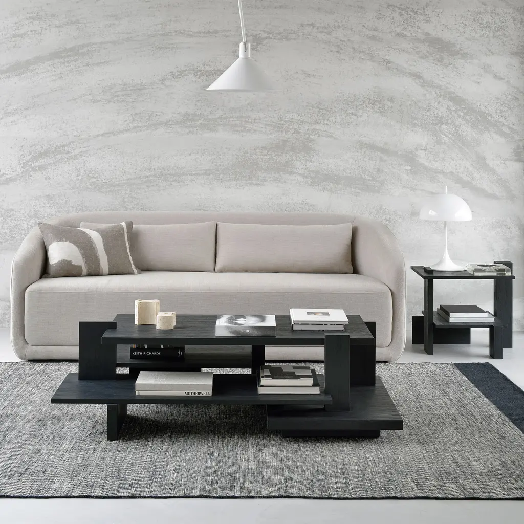 A piece of furniture that looks like a wood sculpture, the Ethnicraft Abstract Coffee Table references De Stijl, or The Style, a Dutch art movement founded in 1917. Created by Ethnicraft’s Alain van Havre, the table has a sculptural presence with asymmetric forms that intersect in an abstract composition. Apart from visual impact, the design also maximizes function, with several flat surfaces providing room to store and organize items like bags, books, plates, or cups. Gorgeous from any angle, the Ethnicraft Abstract Coffee Table creates a focal point in any décor. Made from teak, the table has a varnish finish.