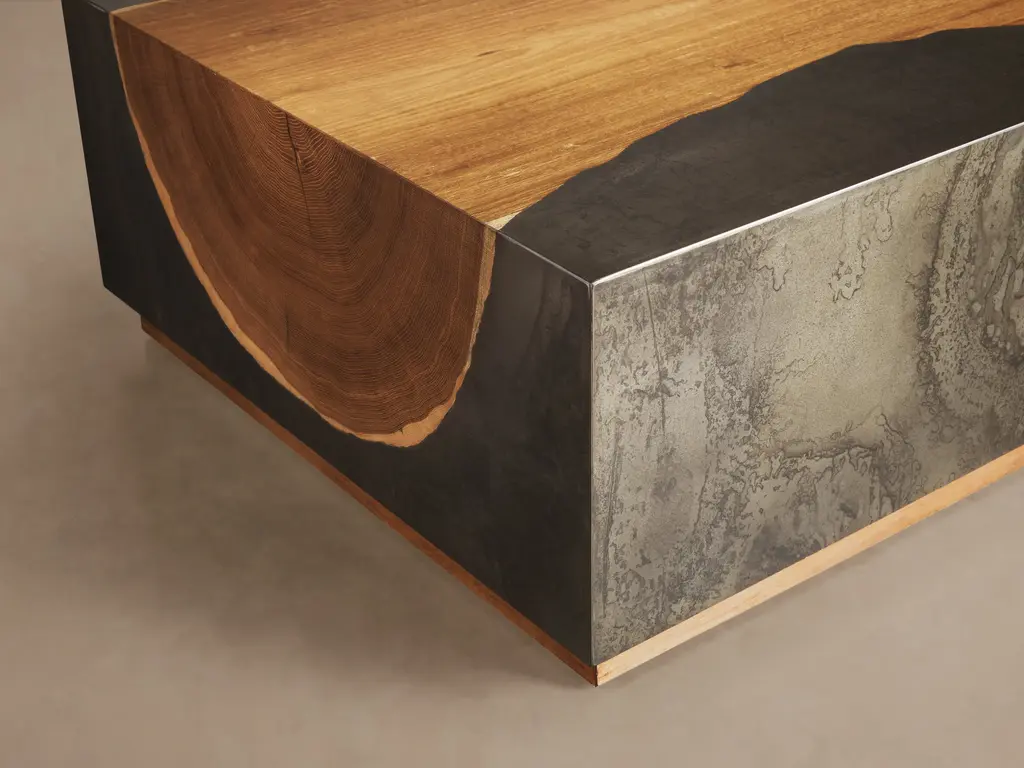 Made from panels of steel left out in the elements to age, Acacius is one of our signature collections handcrafted by a family of imaginative artists in Mexico. After developing a patina of stains and speckles, each panel is molded around the organic silhouette of reclaimed yukas, creating a finished piece as unique as the trees themselves.