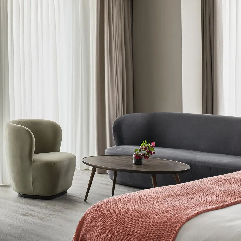 With a sculptural and handcrafted aesthetic, this versatile table adds functional form to a room. It's crafted by Mater, a Danish brand that champions sustainability and ethical design.